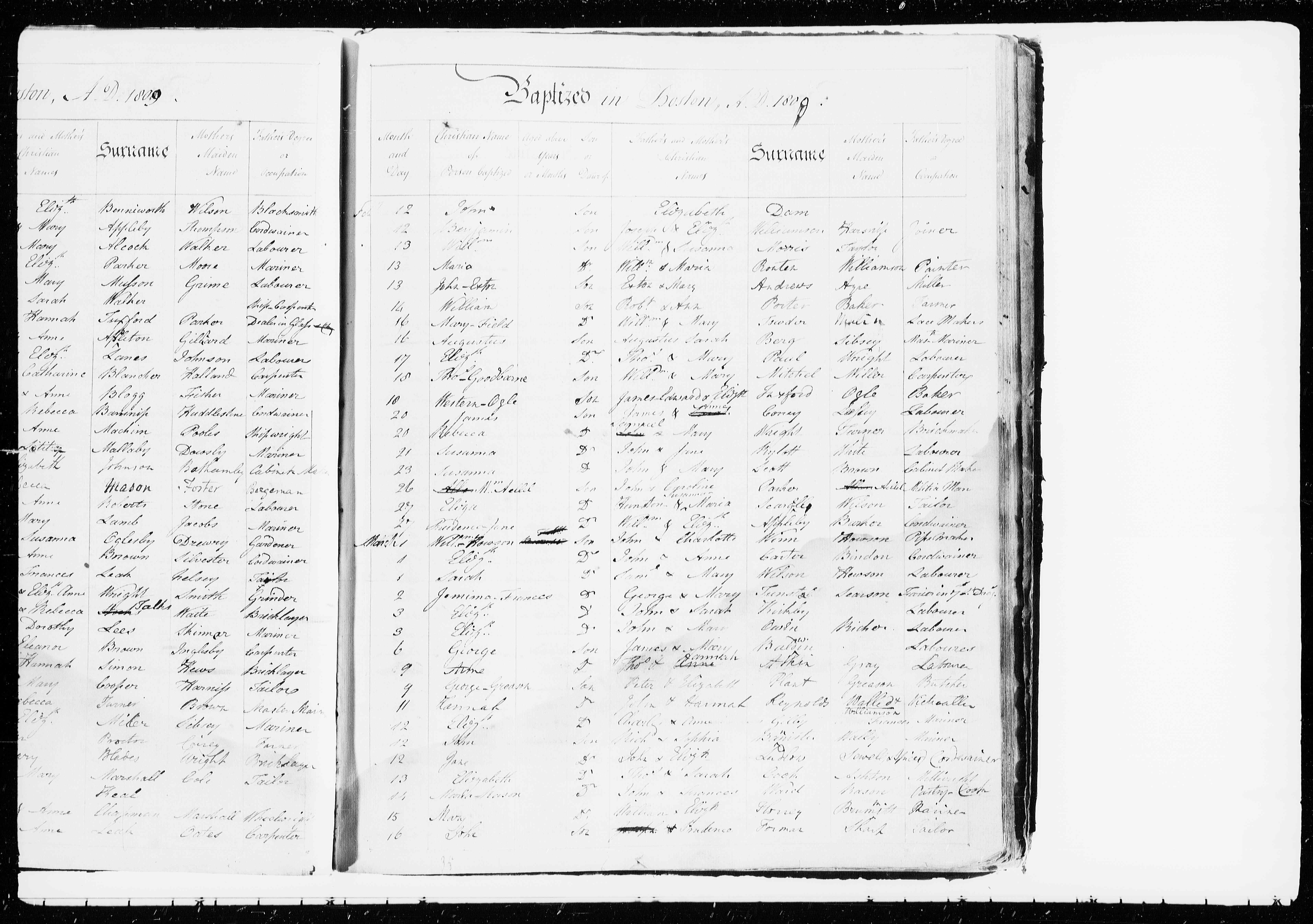 • Baptism Image: Parish Record, 1809, Boston, Lincolnshire, England.