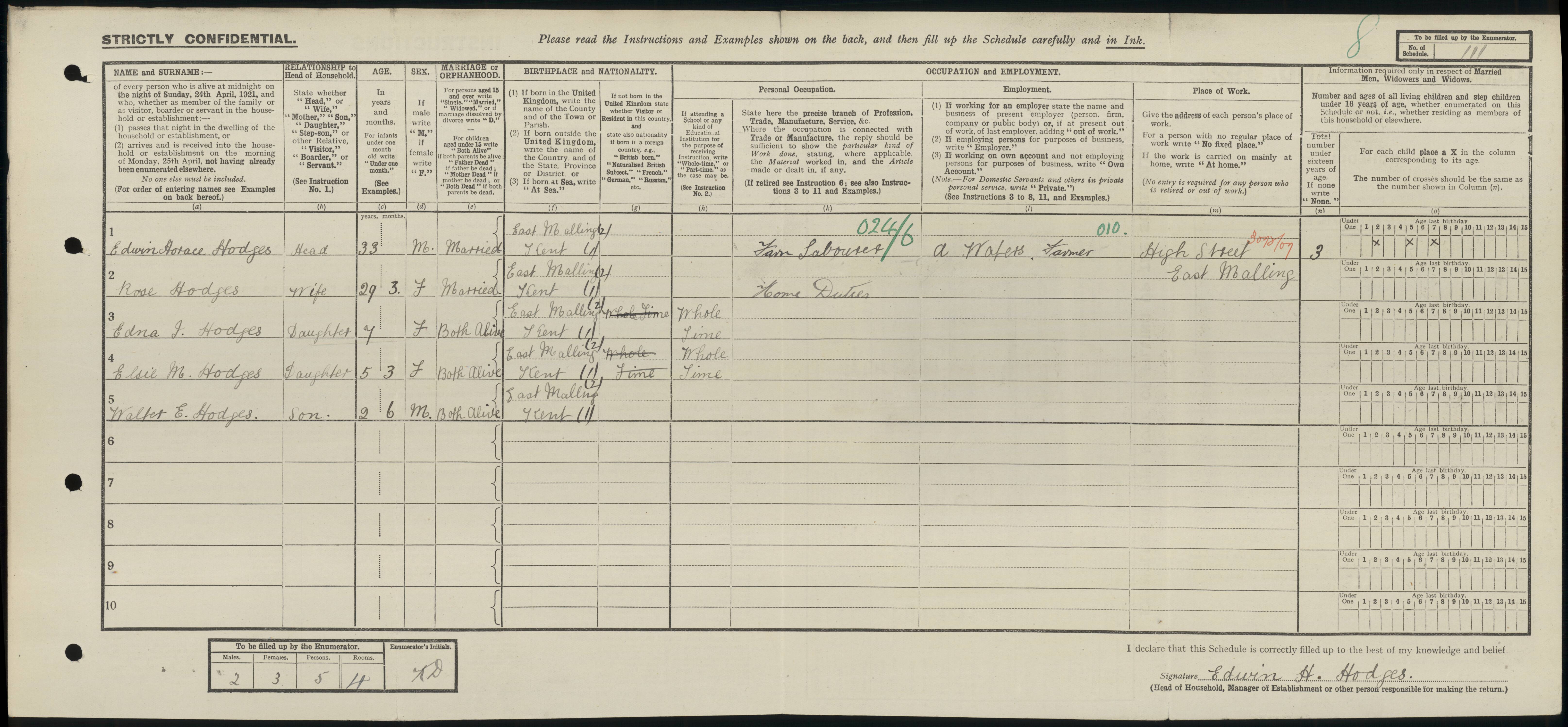 • Occupation: Farm Labourer, 1921, East Malling, Kent, England. Employer: A Waters Farmer