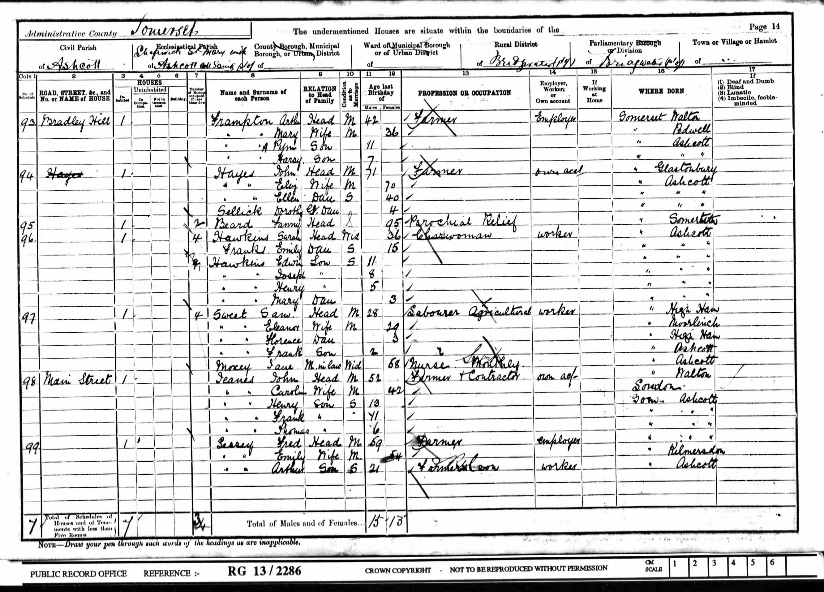 • Lived at: Bradley Hill, 1901, Ashcott, Somerset, England. |