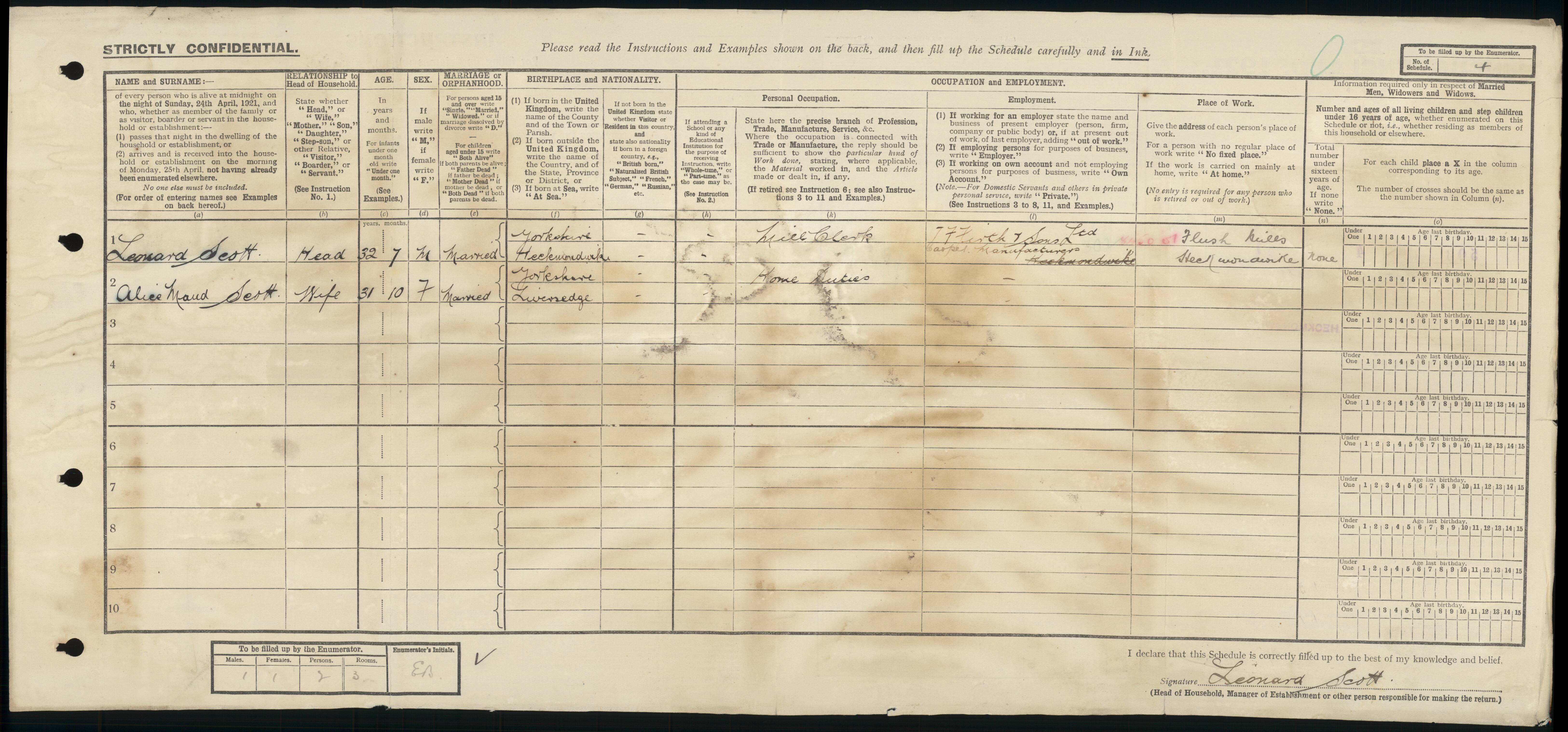 • Occupation: Mill Clerk, 1921, Heckmondwike, Yorkshire (West Riding), England. Employer: T F Firth & Sons Ltd Carpet Manufacturers