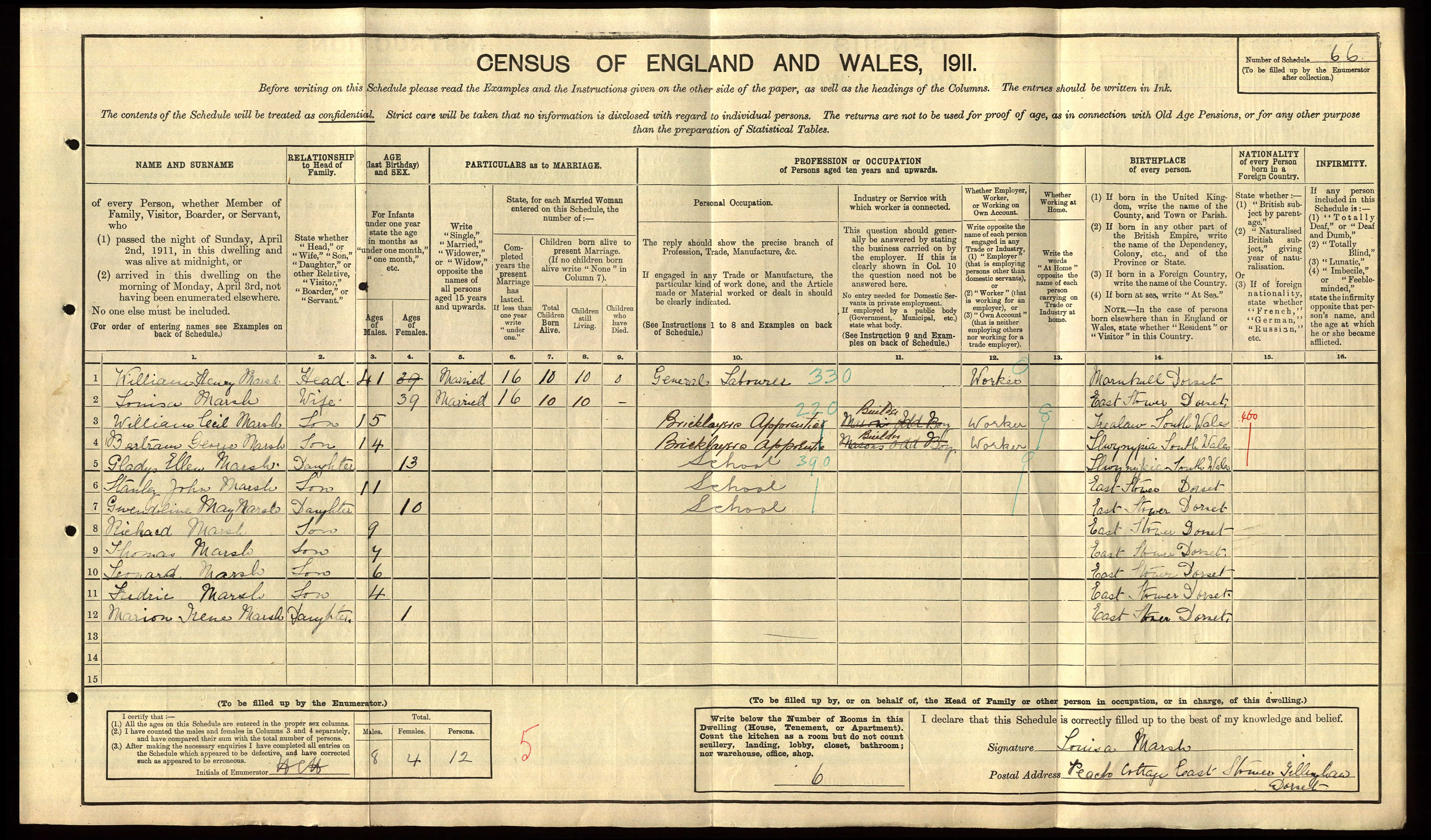 • Occupation: Labourer, 1911, East Stour, Dorset, England.