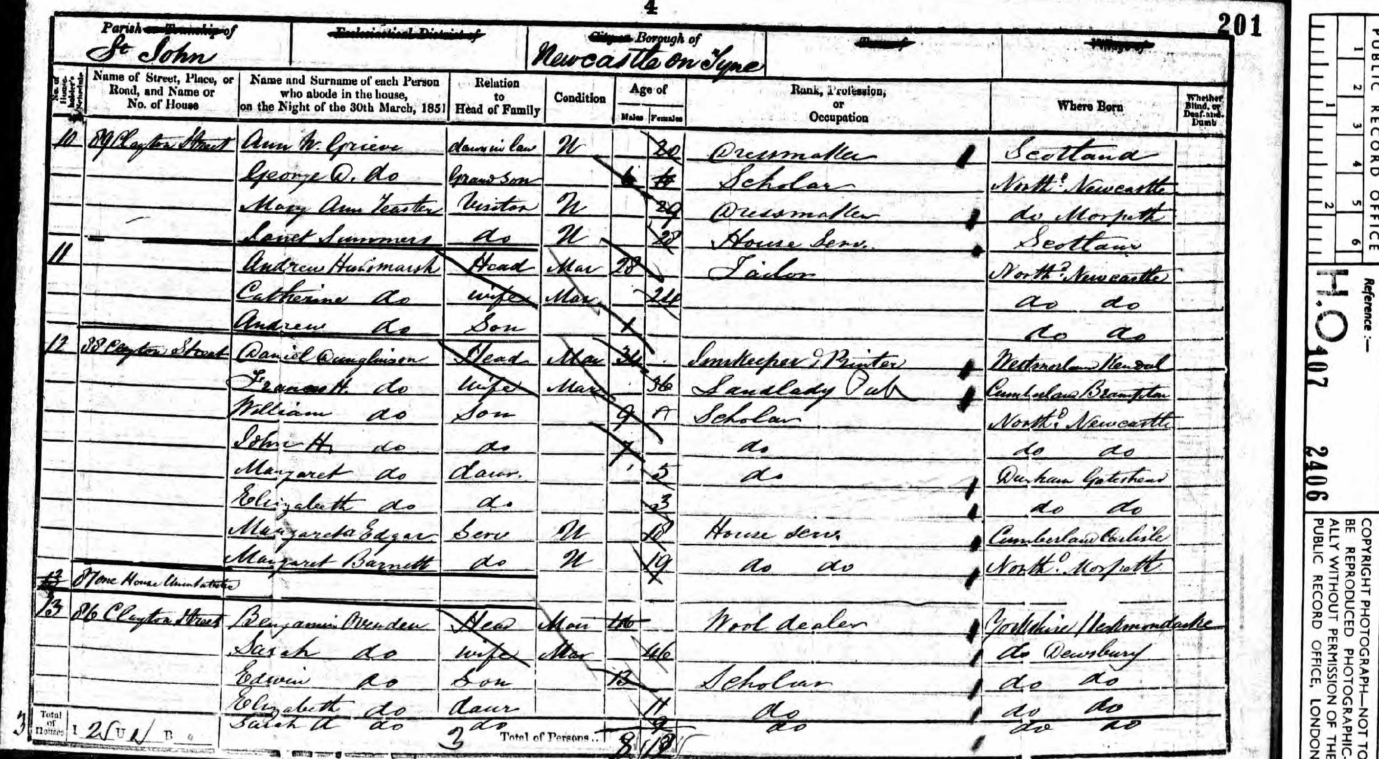 • Lived at: 86 Clayton Street, 1851, Newcastle, Northumberland, England.