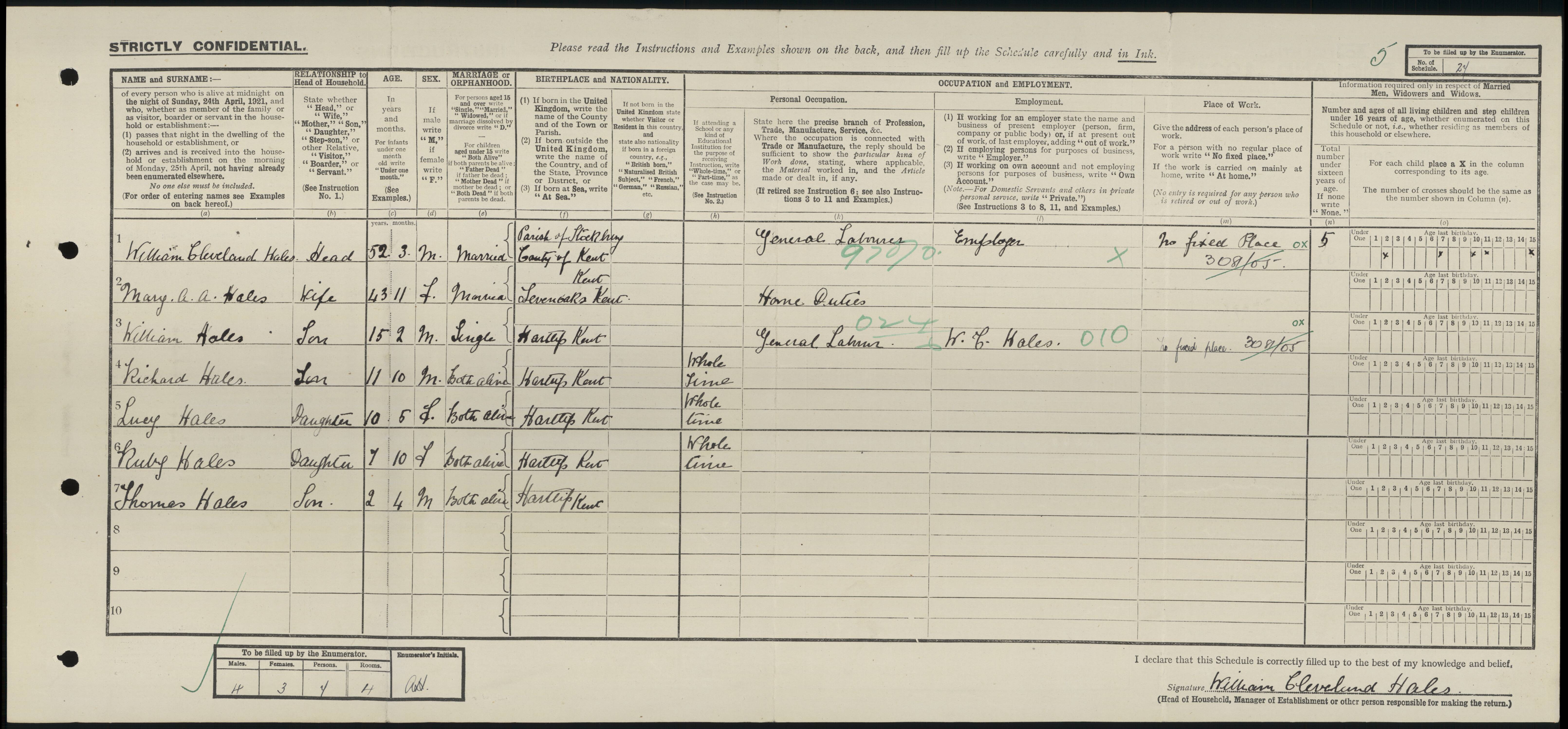 • Lived at: Cradles Harrie, 1921, Hartlip, Kent, England. |