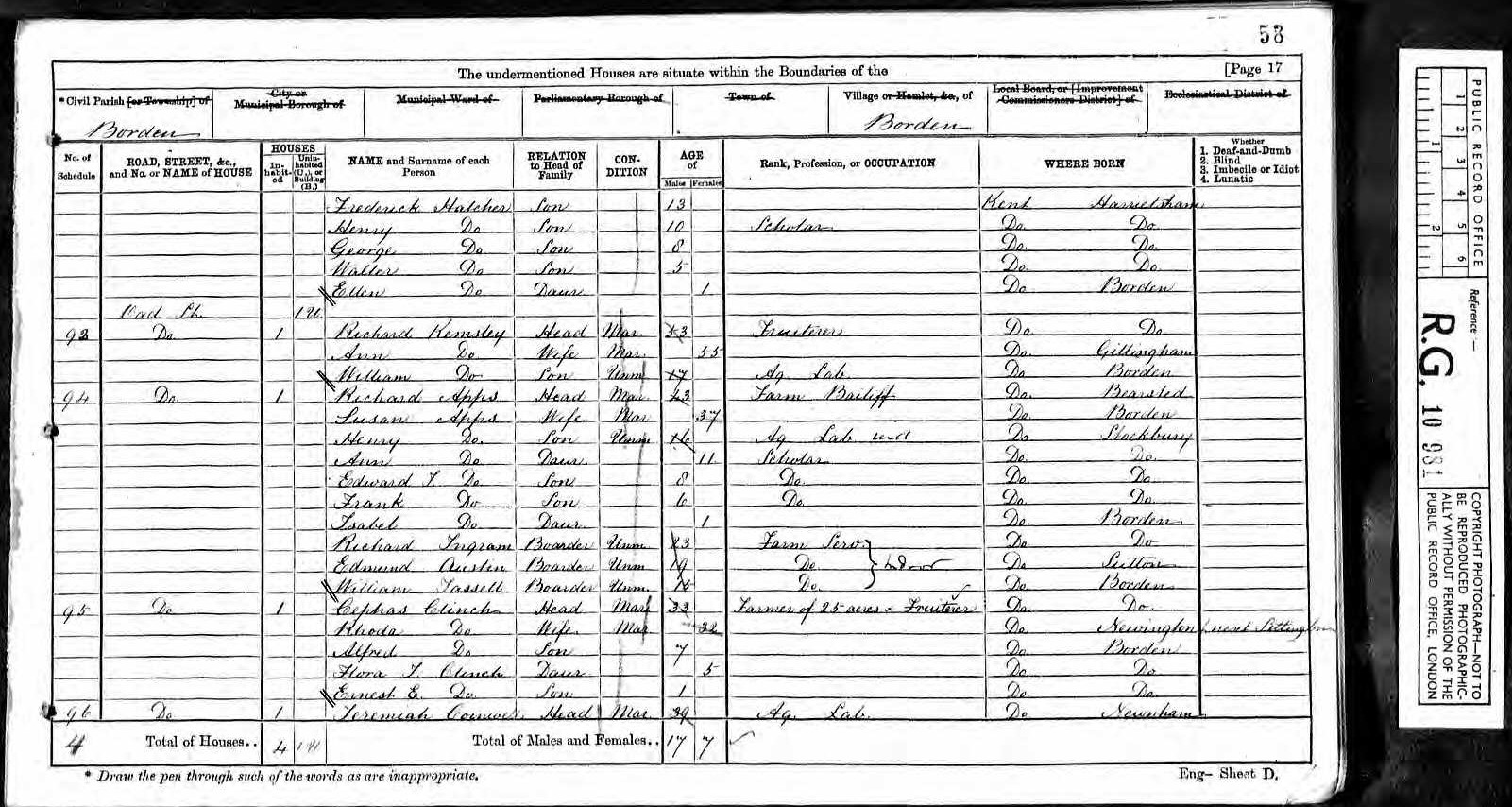 • Occupation: Farmer, 1876, Borden, Kent, England.