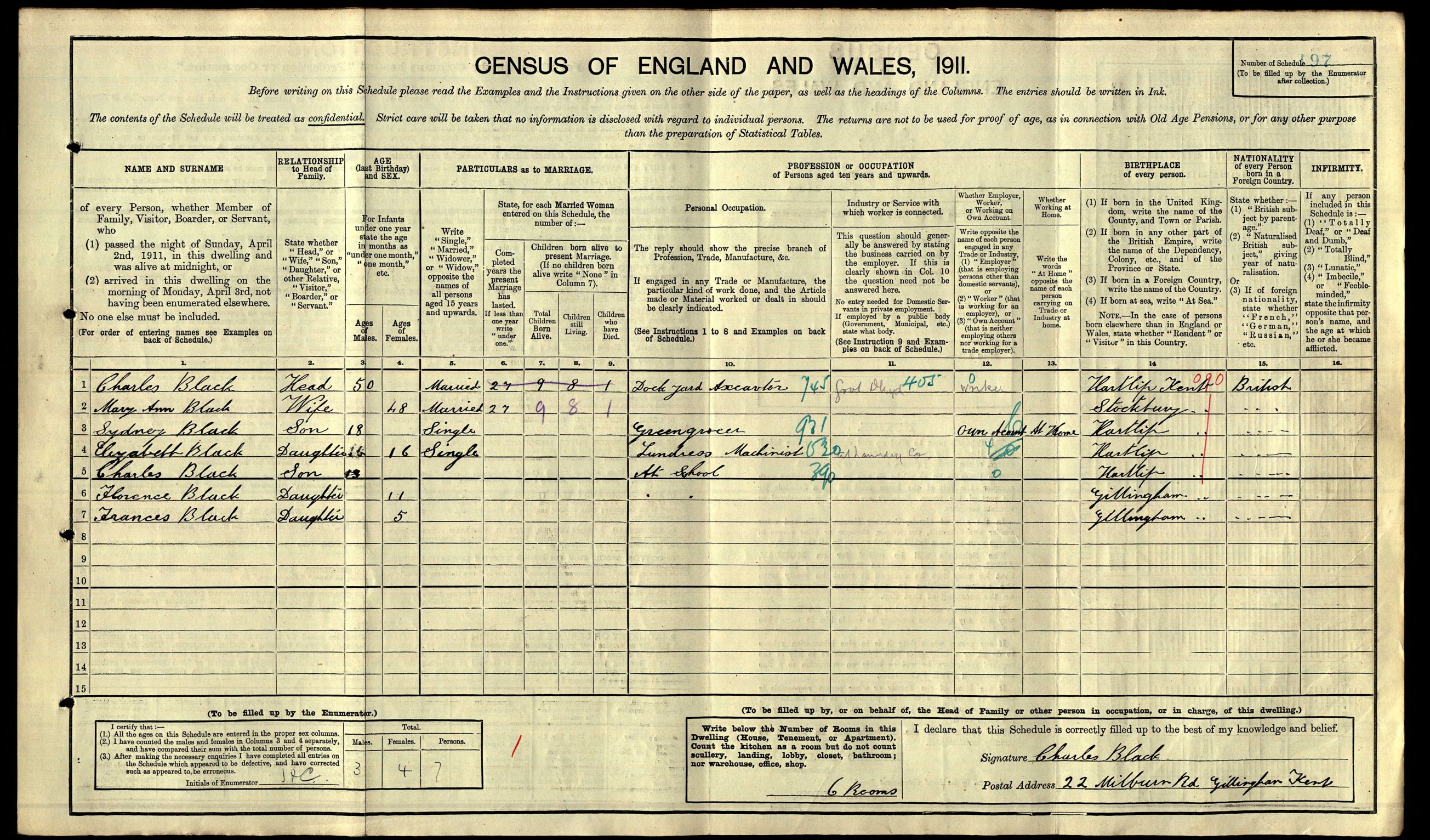 • Lived at: 22 Millburn road, 1911, Gillingham, Kent, England.