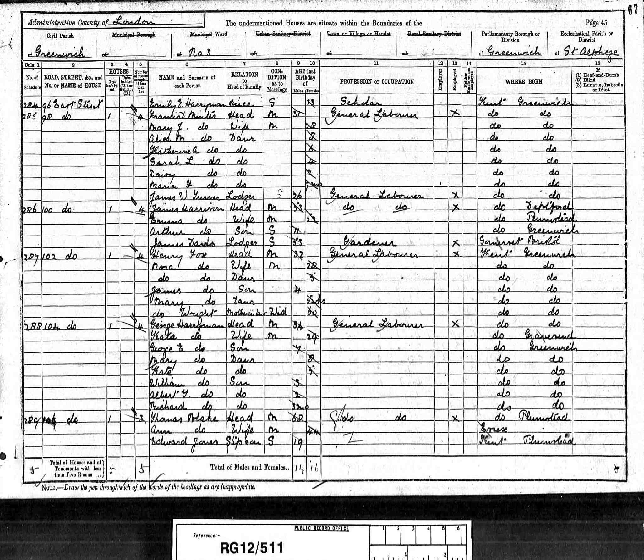 • Lived at: 104 East Street, 1891, Greenwich, Kent, England. 7
