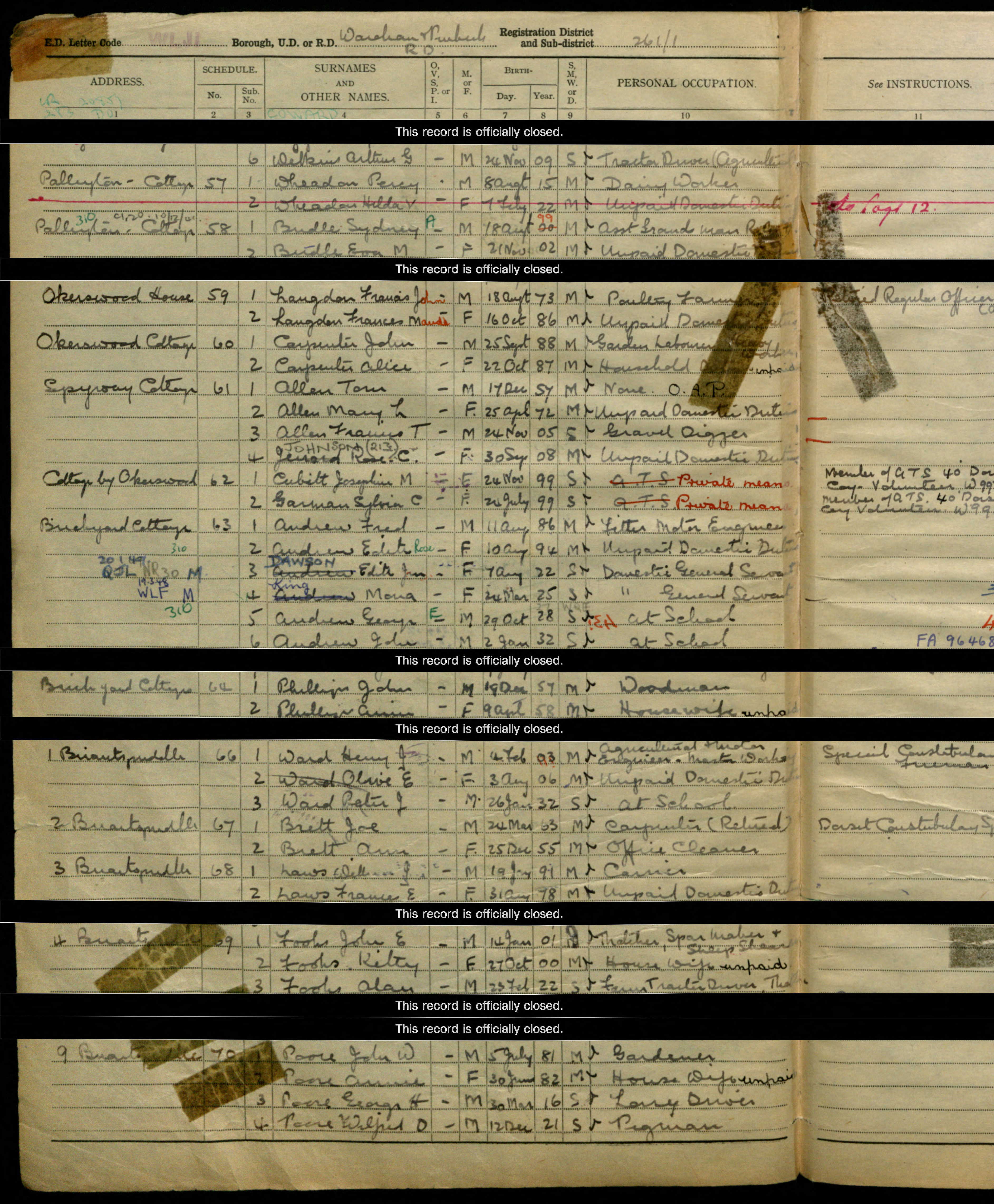 • Lived at: Brickyard Cottage, 1939, Wareham and Purbeck. |