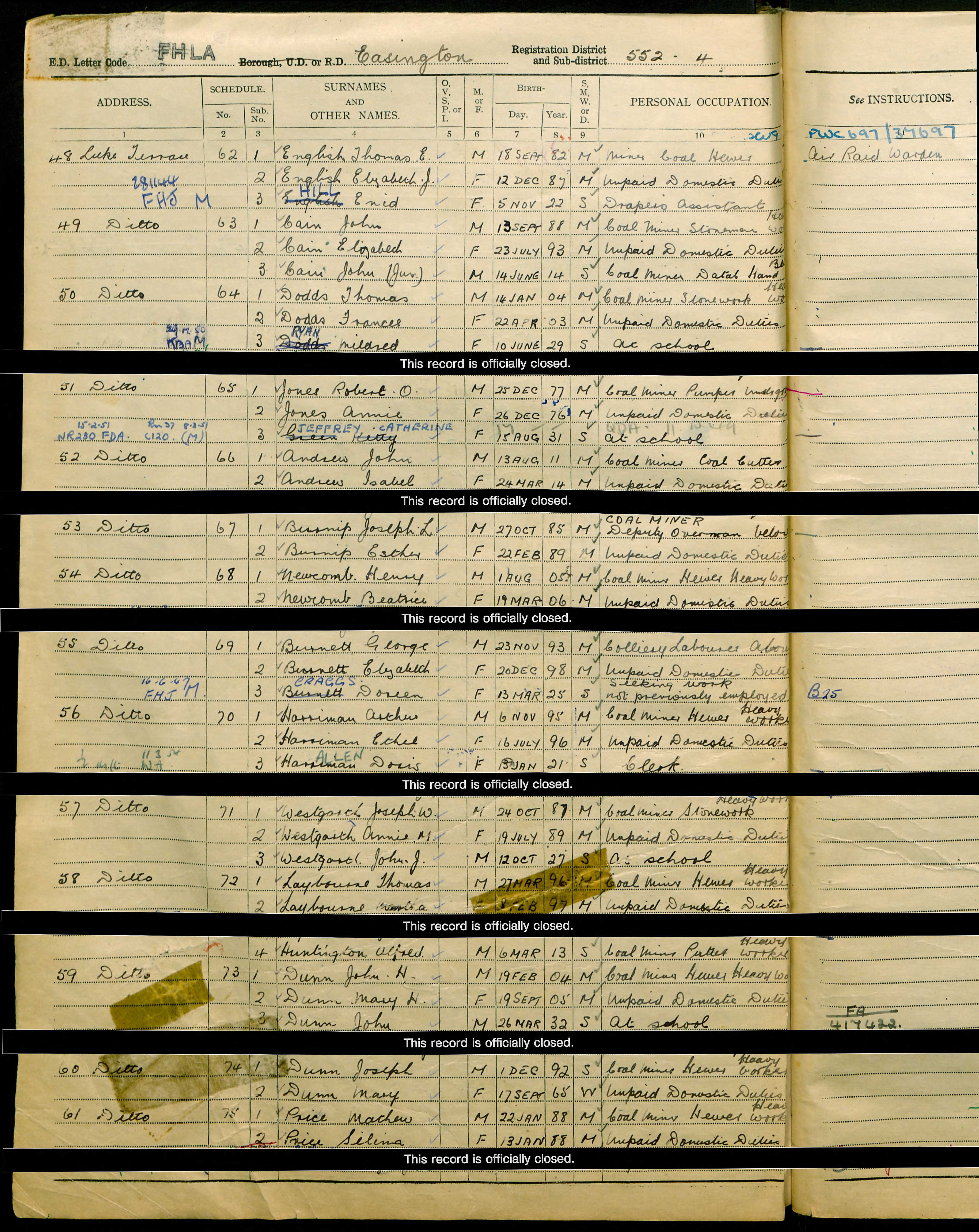 • Lived at: Lock Terrace, 1939, Easington. Arthur married Ethel. (Ethel was born on 16 Jul 1896 and died after 1939.) |