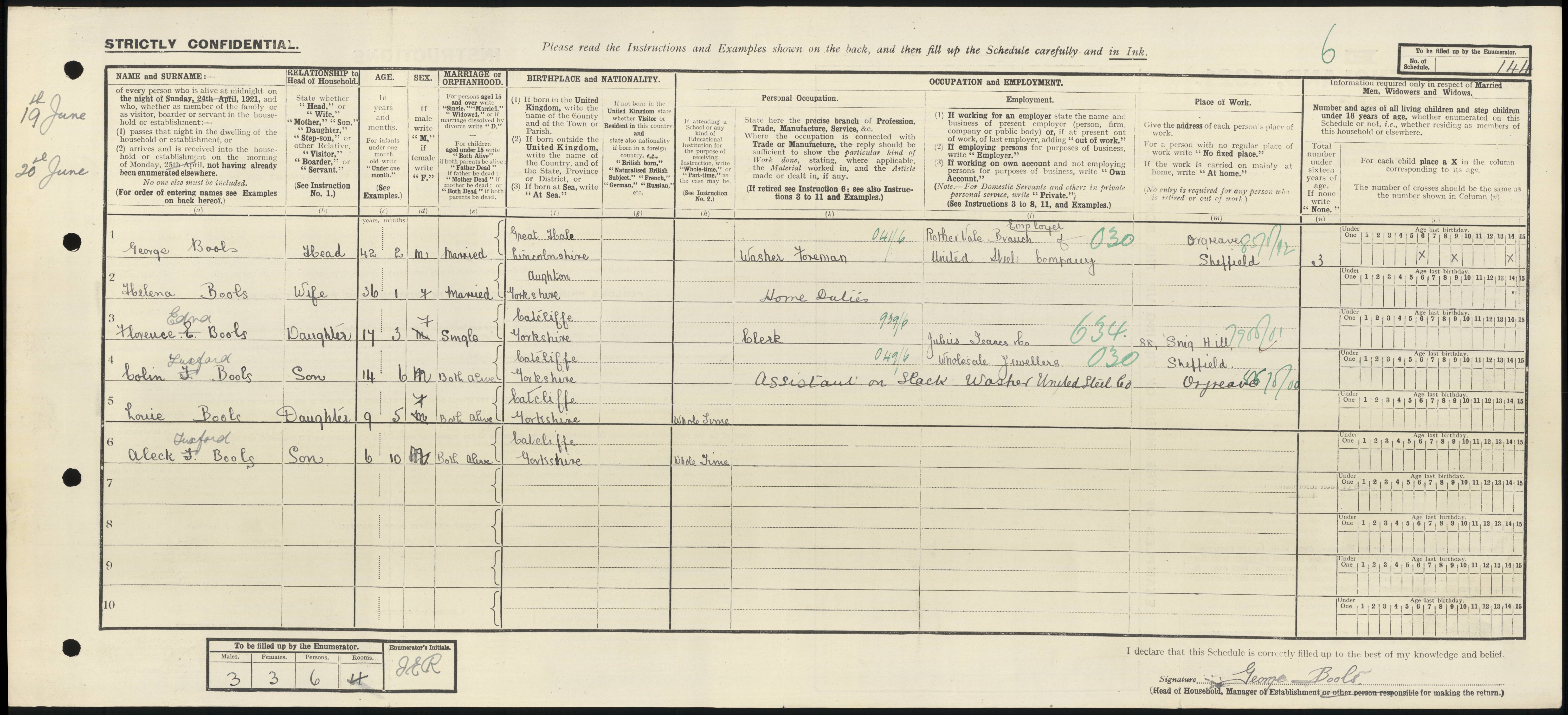 • Lived at: 11 Victoria Street, 1921, Catcliffe, Yorkshire (West Riding), England. |