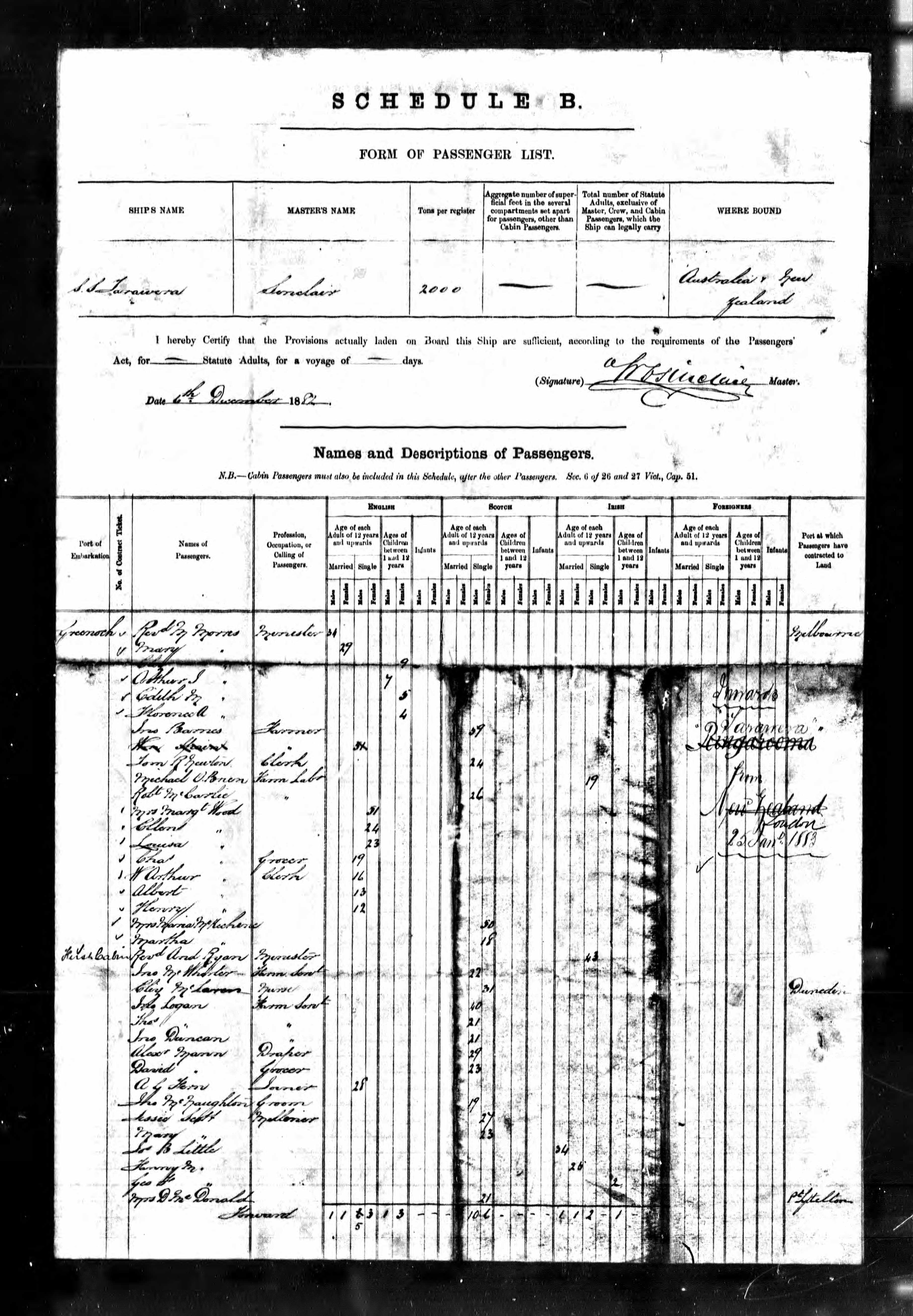 • Immigration: to Australia from Greenock, 1883, Melbourne.