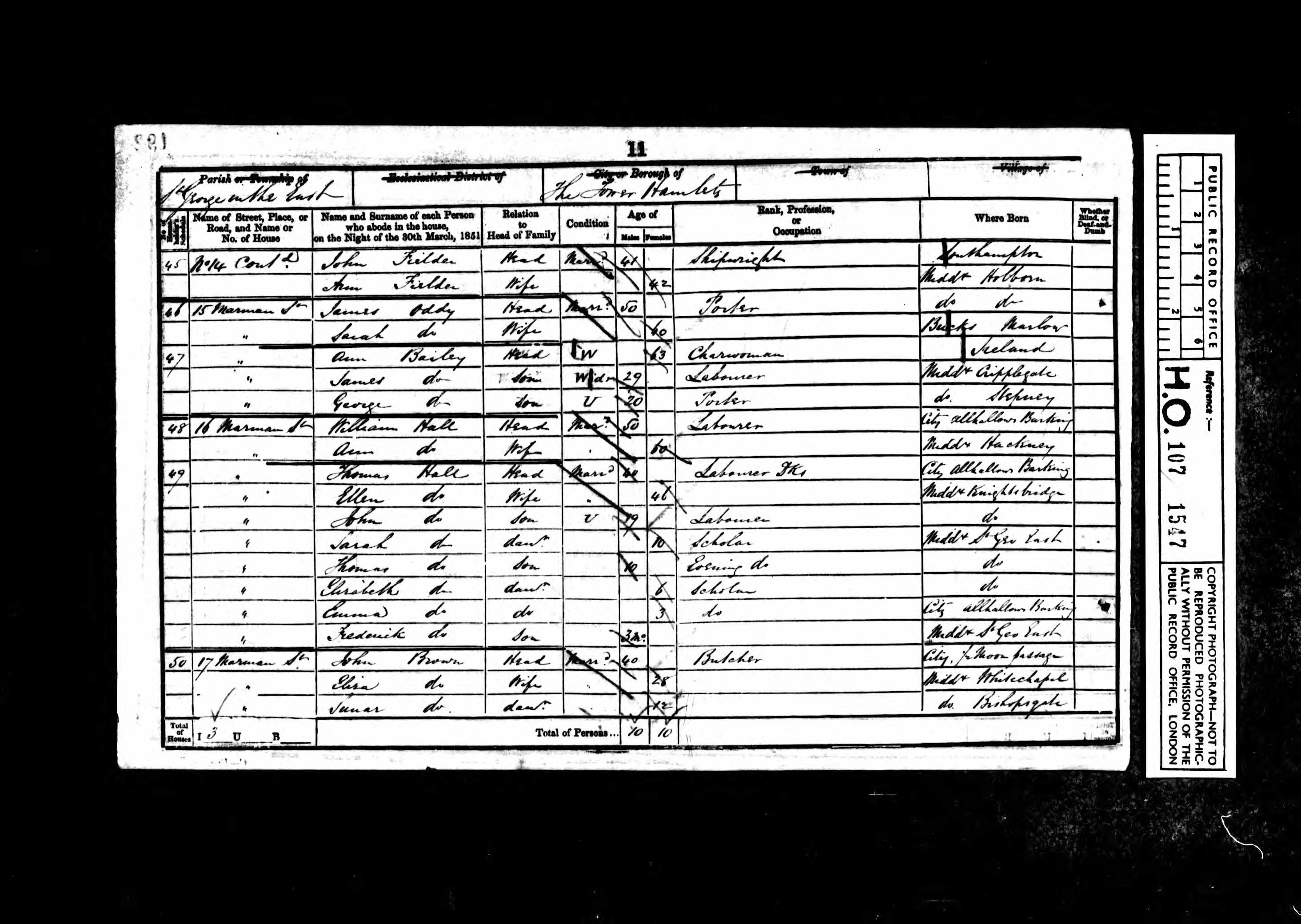 • Lived at: 16 Marman Street, 1851, St. George E. |