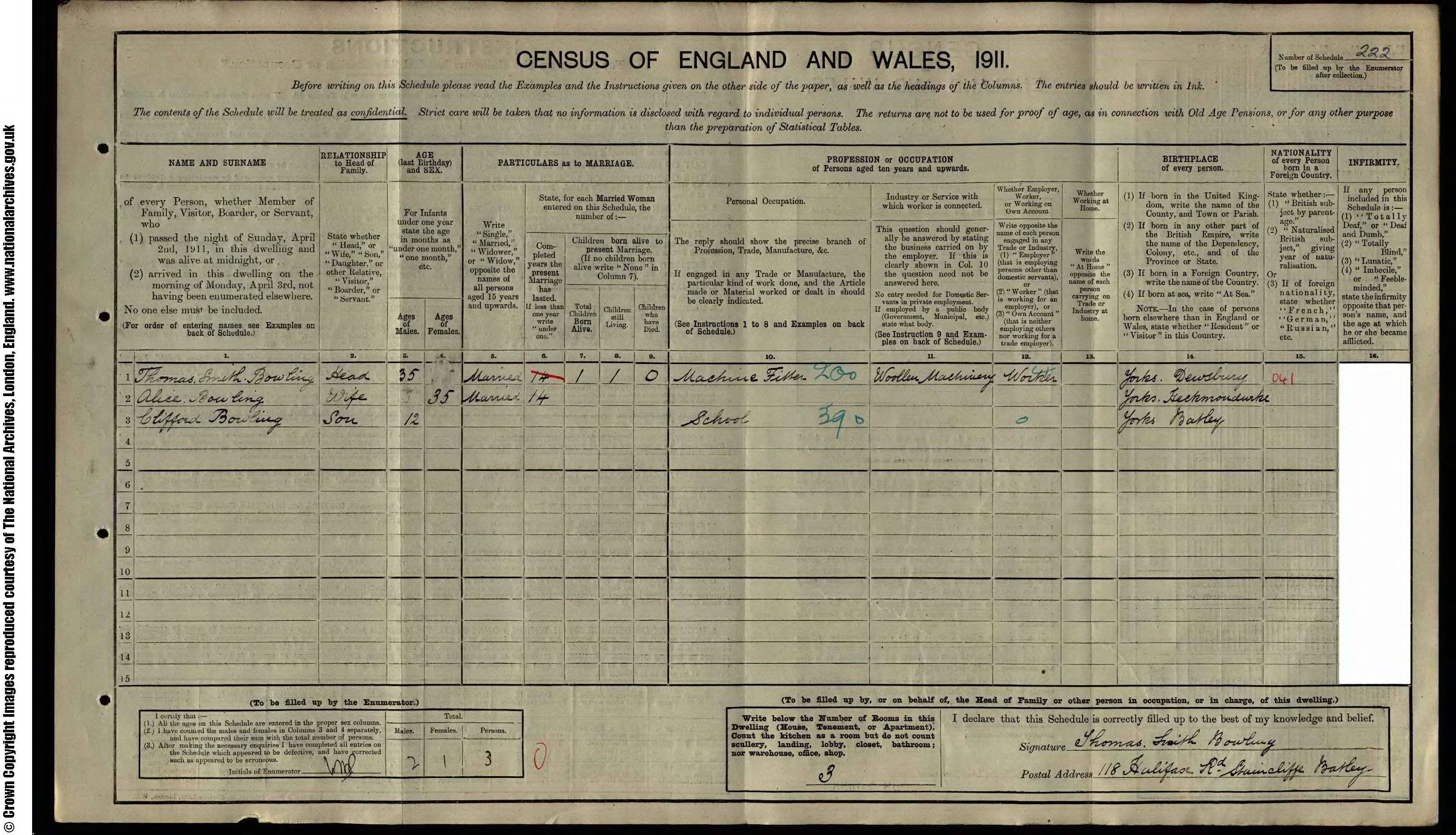 • Lived at: 118 Halifax Road, 1911, Staincliffe, Dewsbury, Yorkshire, England.