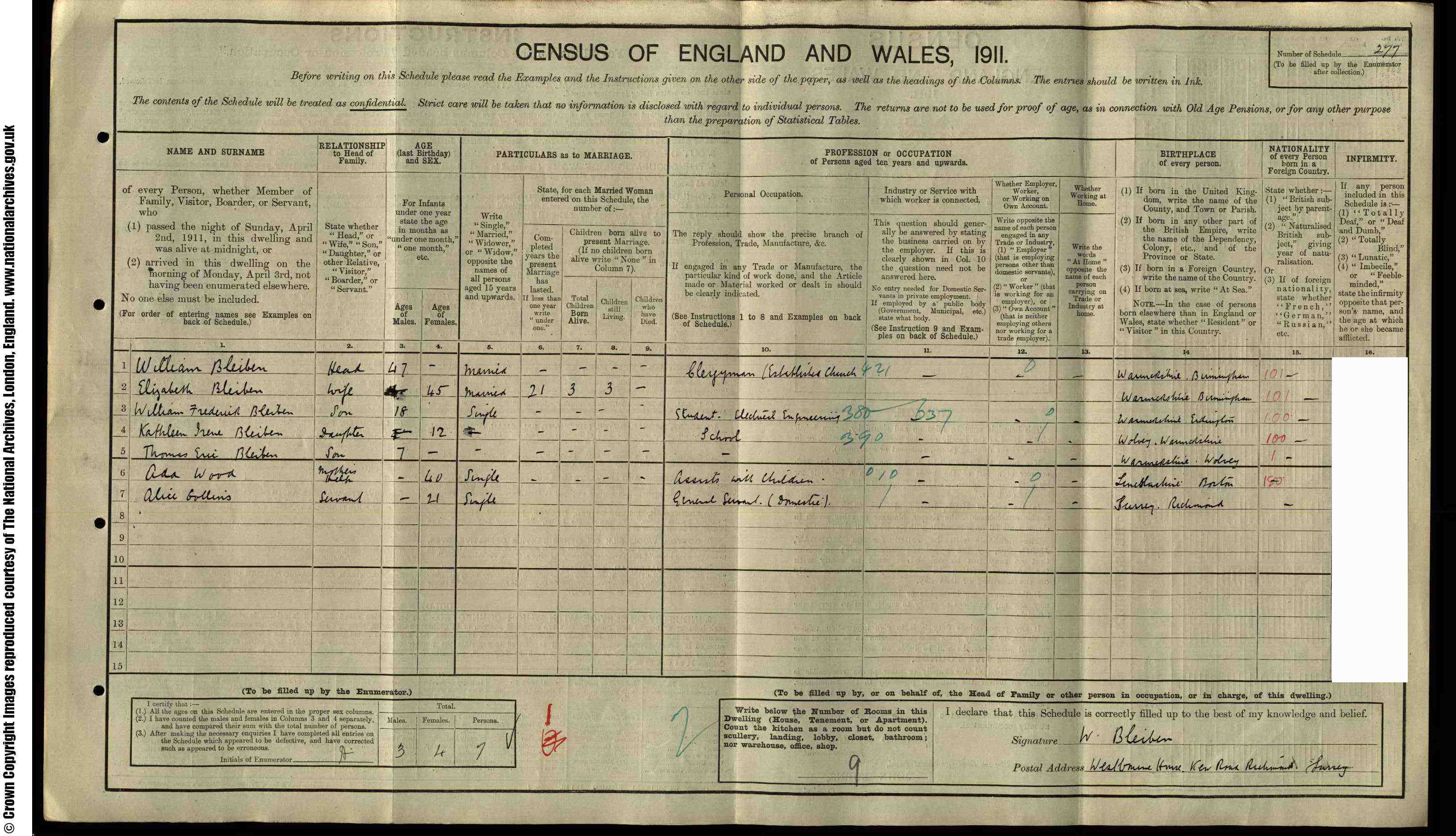 • Lived at: 23 Vicars Close, 1911, Wells, Somerset.
