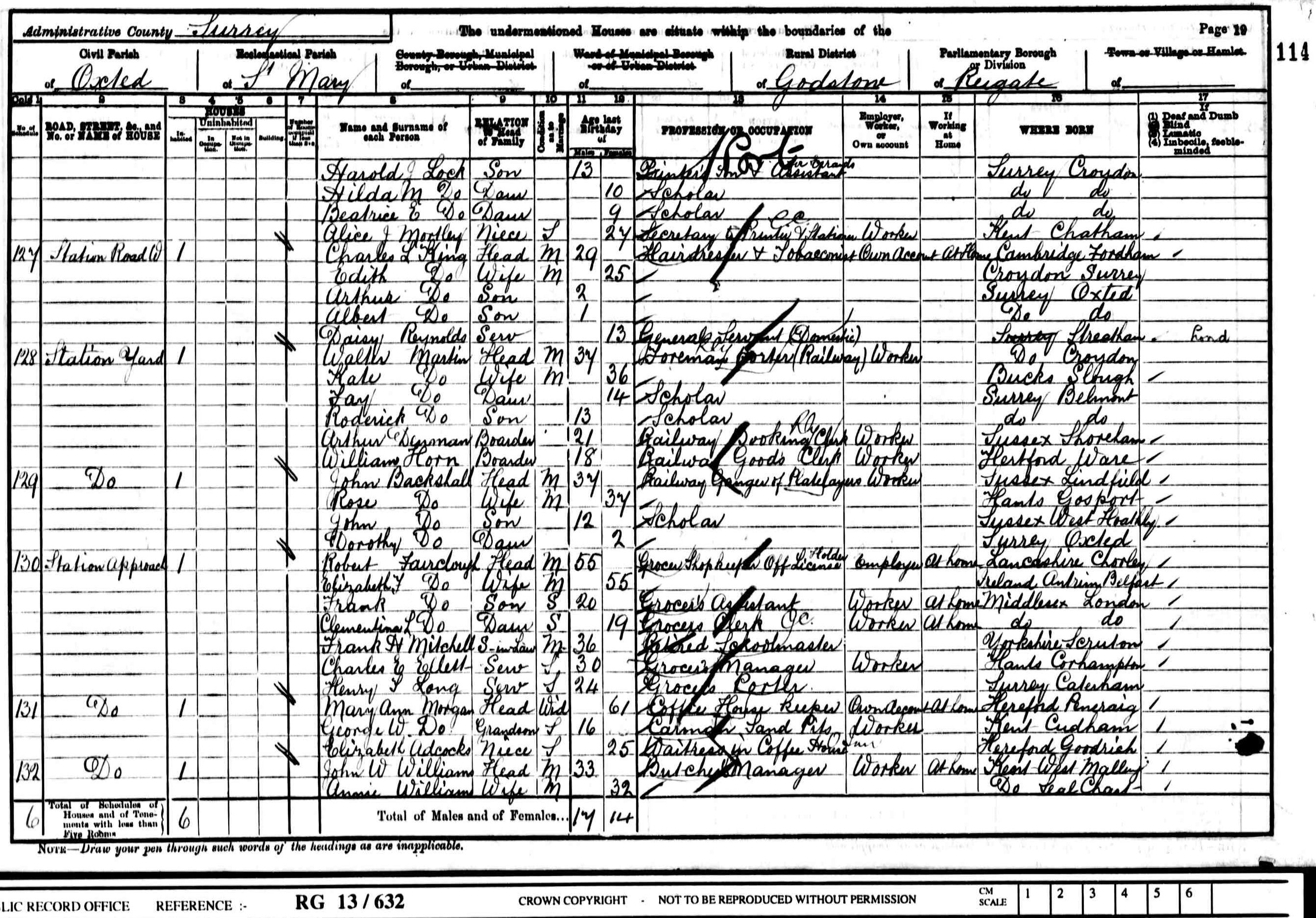 • Occupation: Butcher's Manager, 1901, Oxted, Surrey. 2