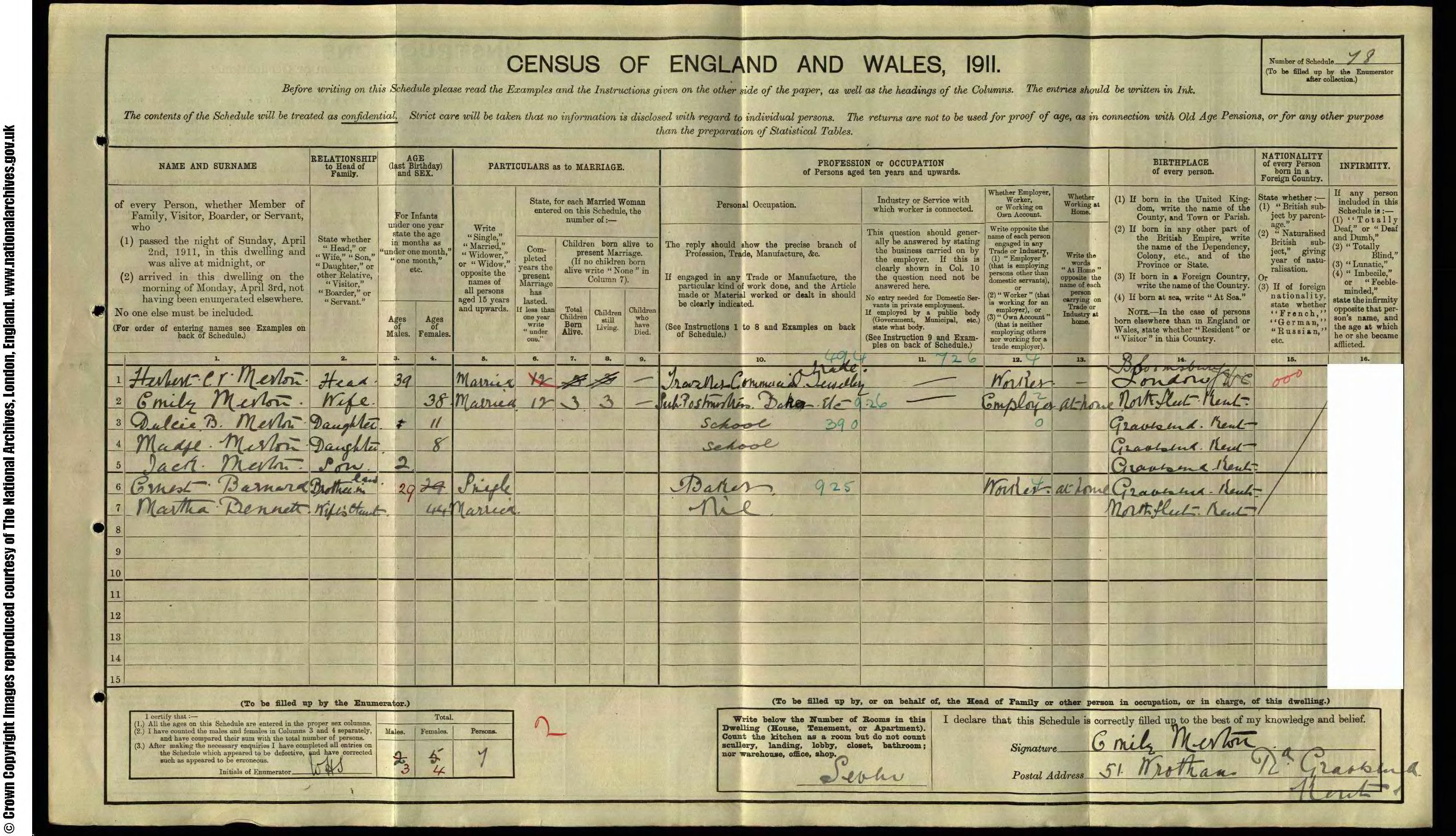 • Lived at: 51 Wrotham Road, 1911, Gravesend, Kent, England.