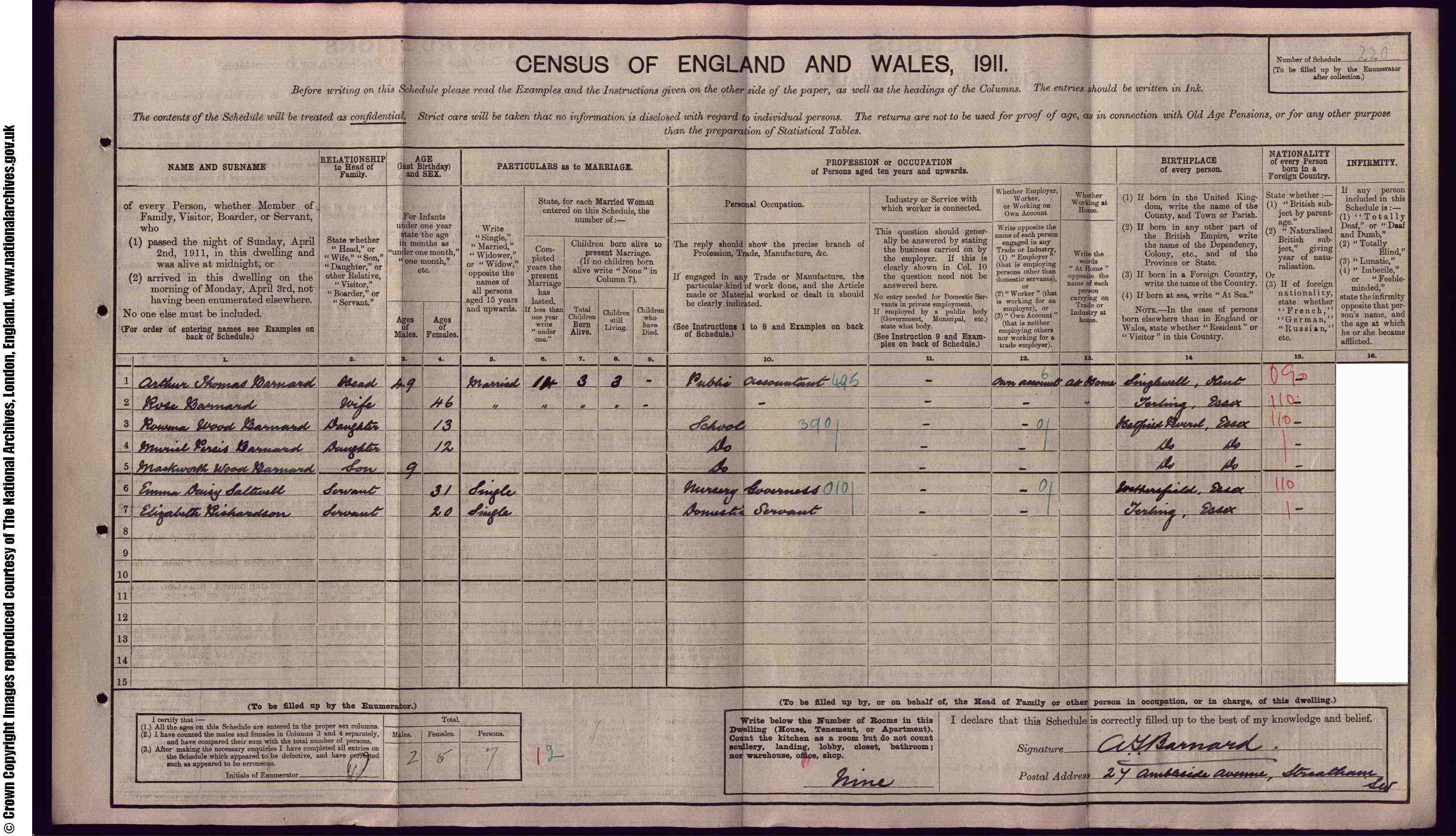 • Lived at: 27 Ambleside Avenue, 1911, Streatham, Kent, England.
