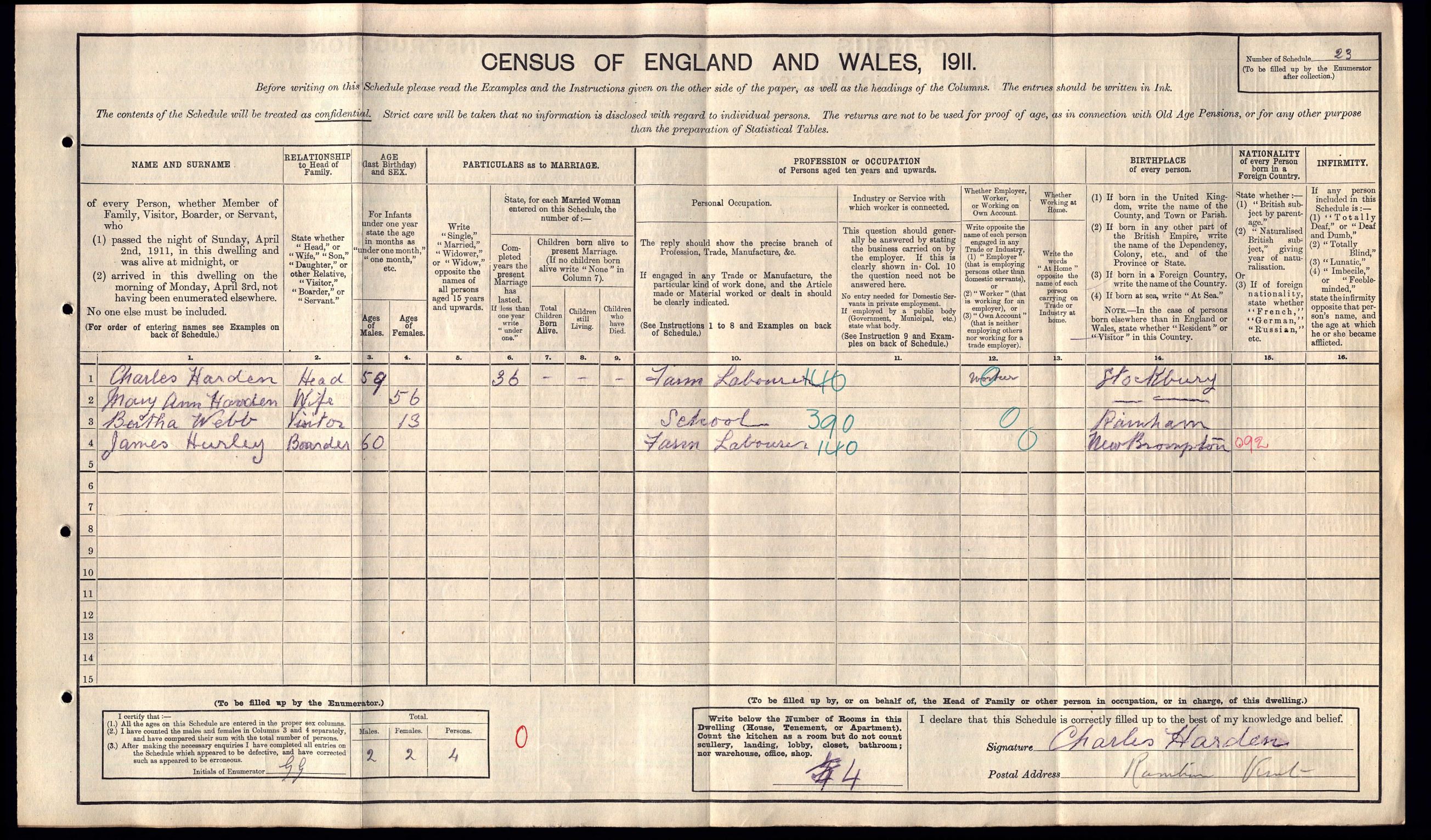 • Lived at: Rainham, 1911, Kent, England. • Lived at: 145 Station Road, 1921, Rainham, Kent, England. Mary married Charles Harden Mar Q 1875 in Hollingbourne, Kent, England. (Charles Harden was born in 1852 and died after 1911.) |