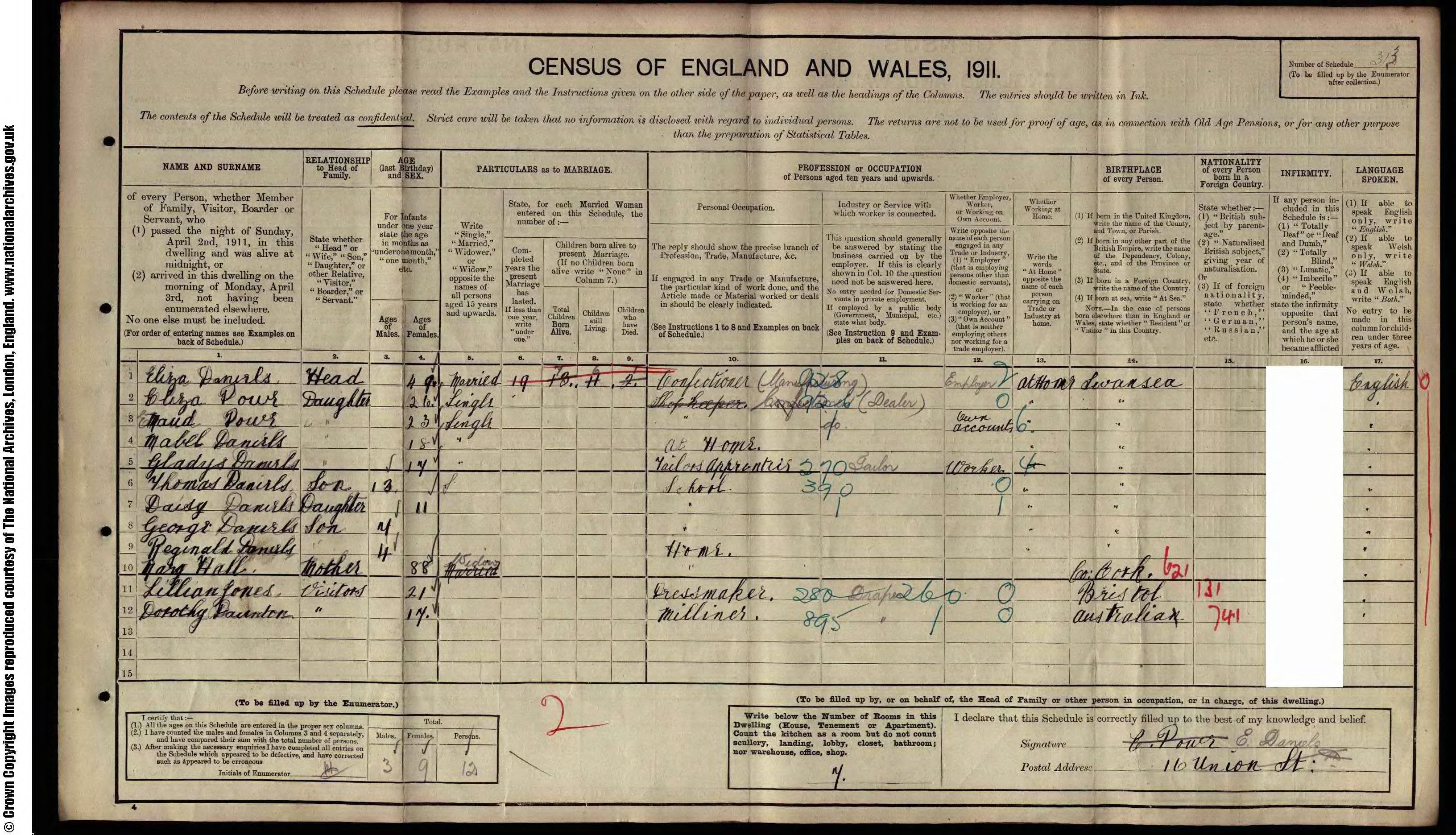 • Occupation: Dealer in left off apparel, 1871, Swansea, Glamorgan, Wales. 4
