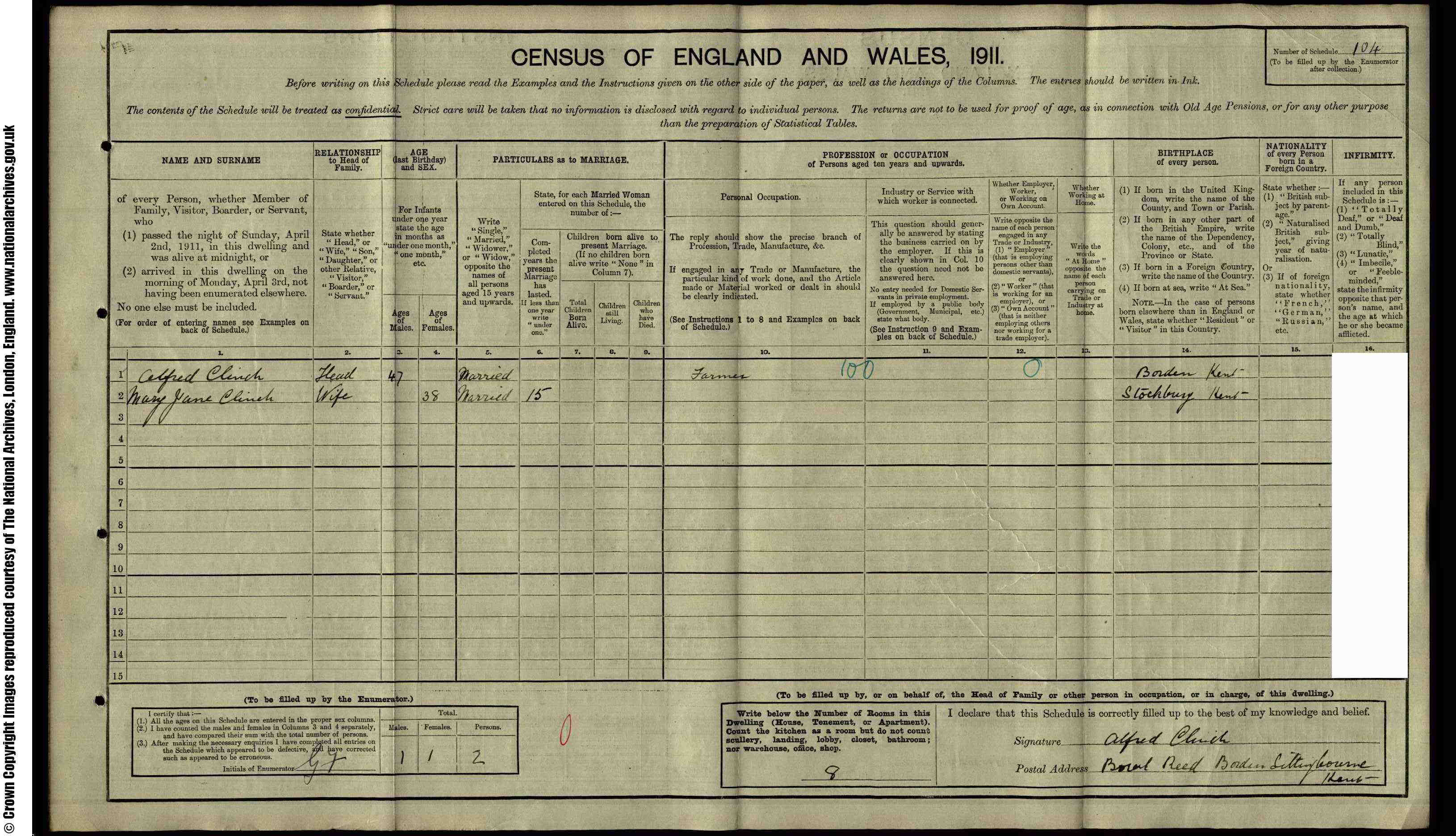 • Lived at: Bowl Reed, 1921, Borden, Kent, England. Mary married Alfred Clinch, son of Cephas Clinch and Rhoda, on 24 Aug 1895 in Milton, Kent, England.1 (Alfred Clinch was born circa 1864 in Borden, Kent, England 1 2 5 and died after 1921 1 2.) |