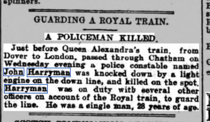 • Newspaper Article: PC killed on duy, 1907, Chatham, Kent, England. |