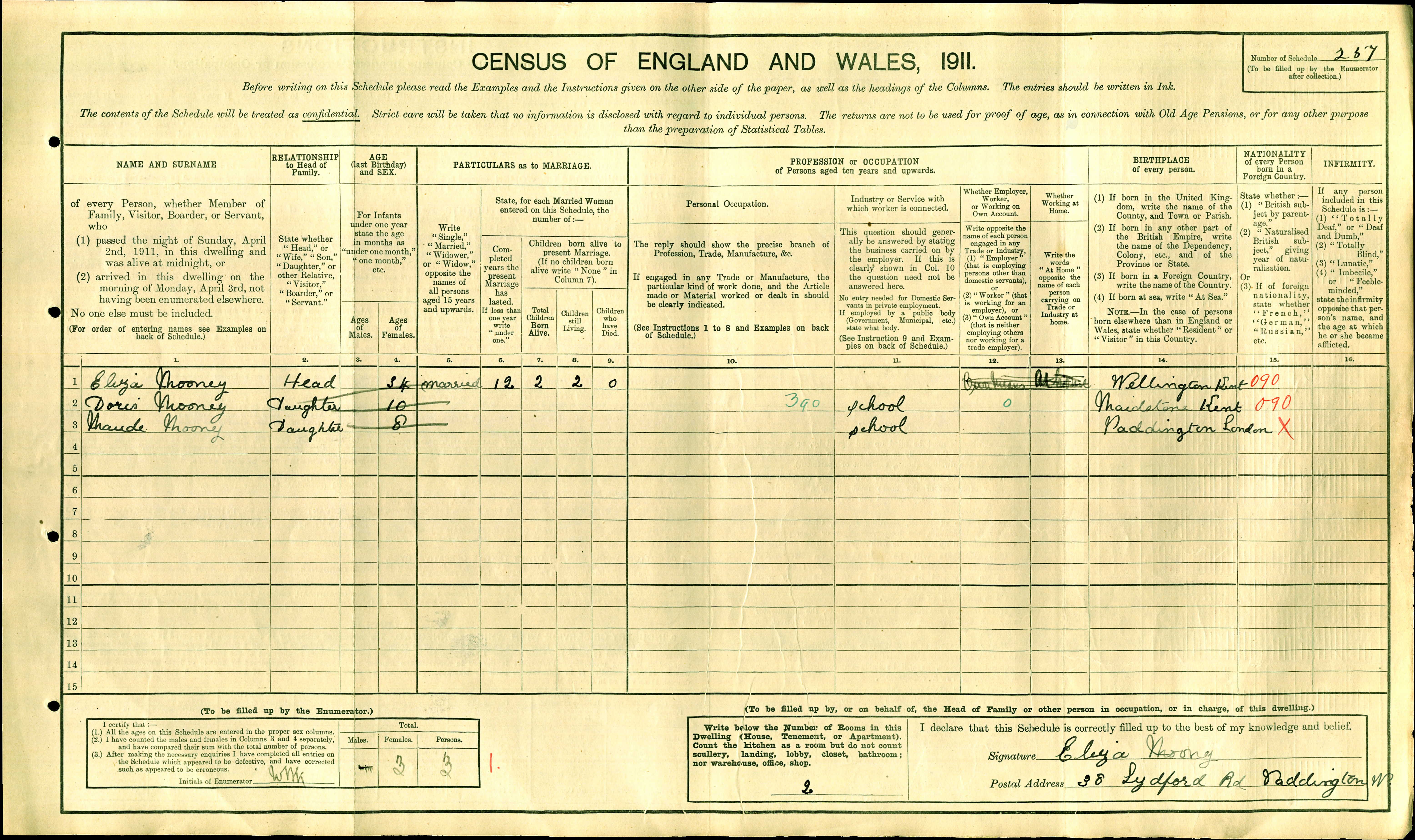 • Lived at: 38 Lydford Road Paddington, 1911, London. Eliza had a relationship with George Mooney on 15 Oct 1899 in Maidstone, Kent, England.1 (George Mooney was born in Maidstone, England and died after 1903.) |