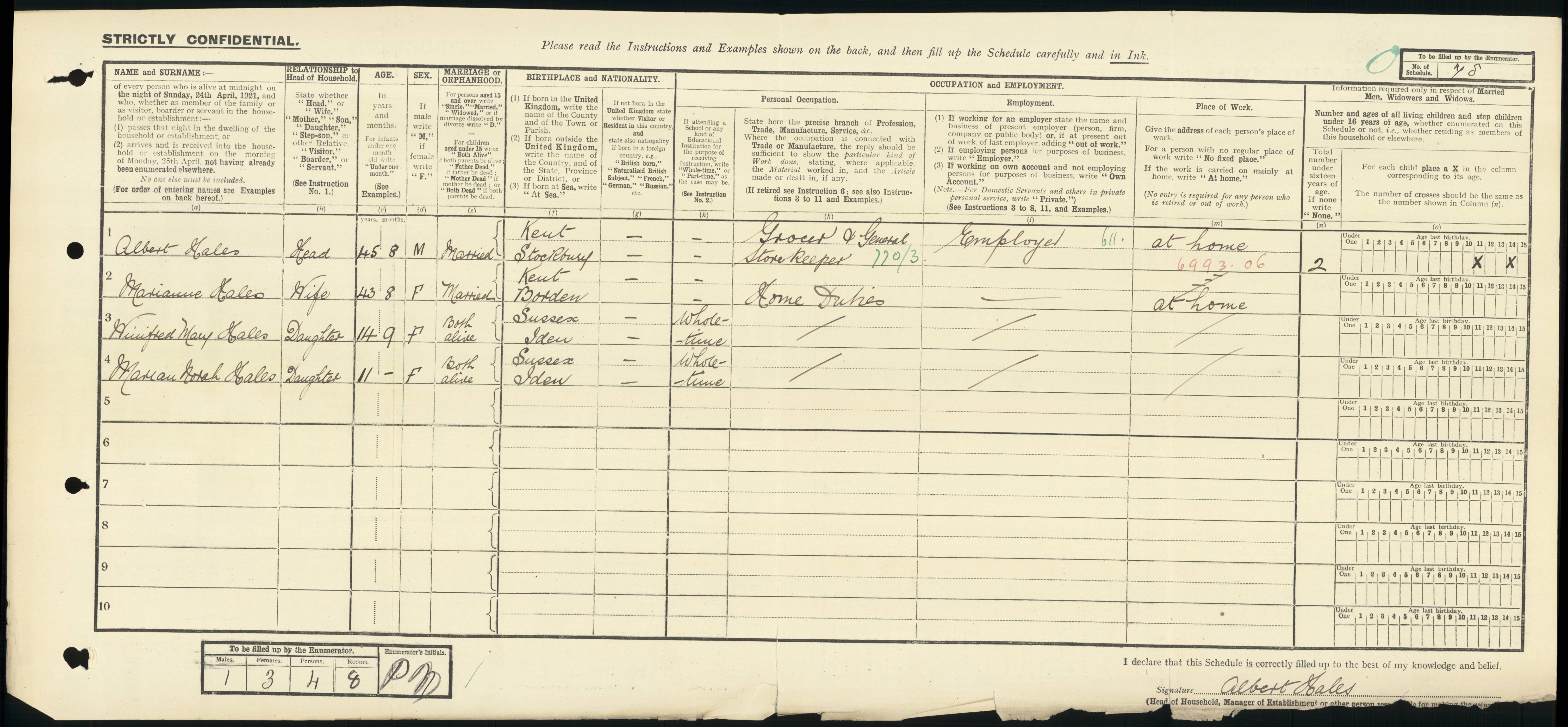 • Occupation: Grocer's Asst, 1901, Stockbury, Kent, England.