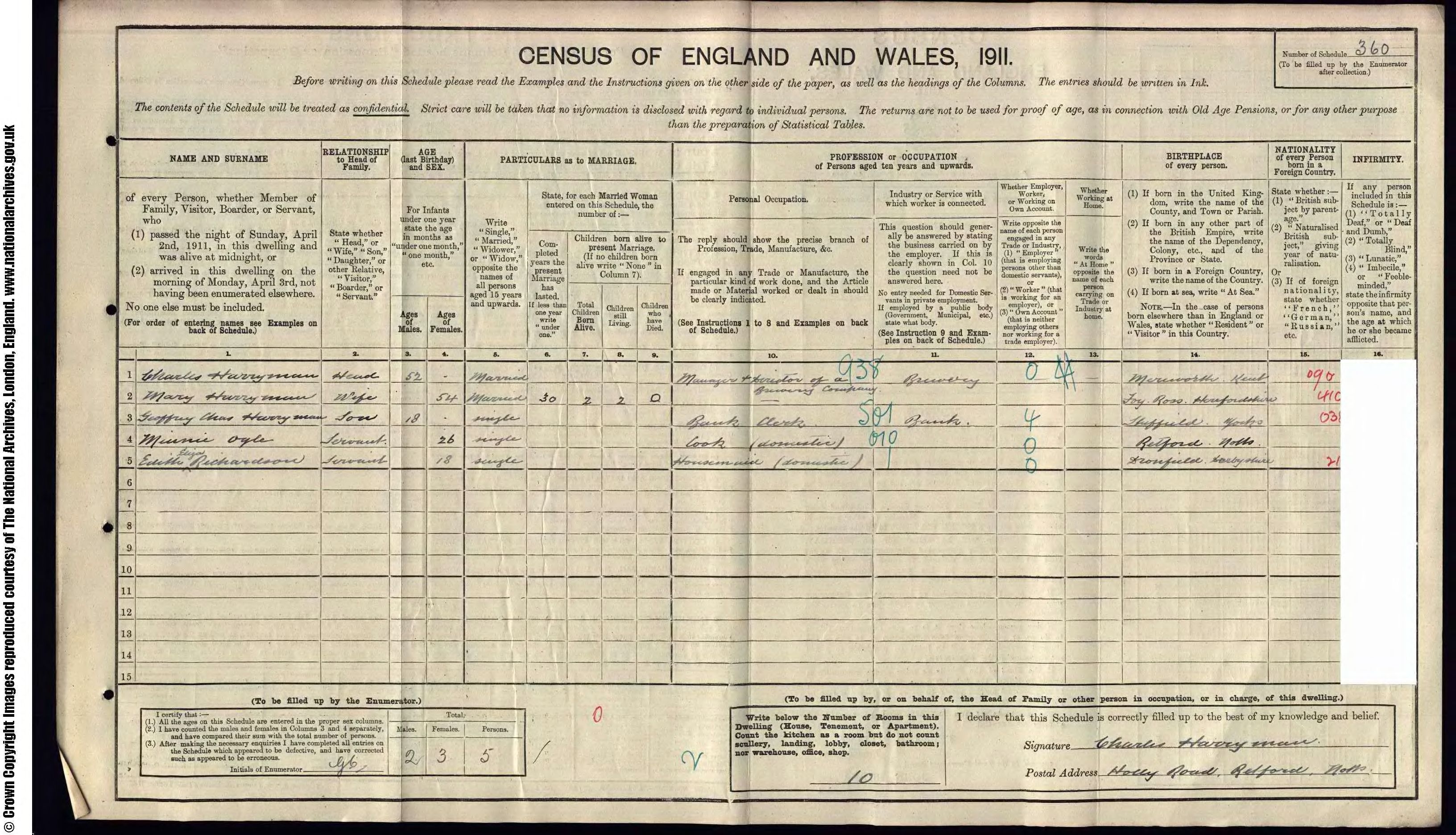 • Occupation: Brewery Director and Brewer, 1901, Ordsall, Nottinghamshire, England. 2 10 12 13