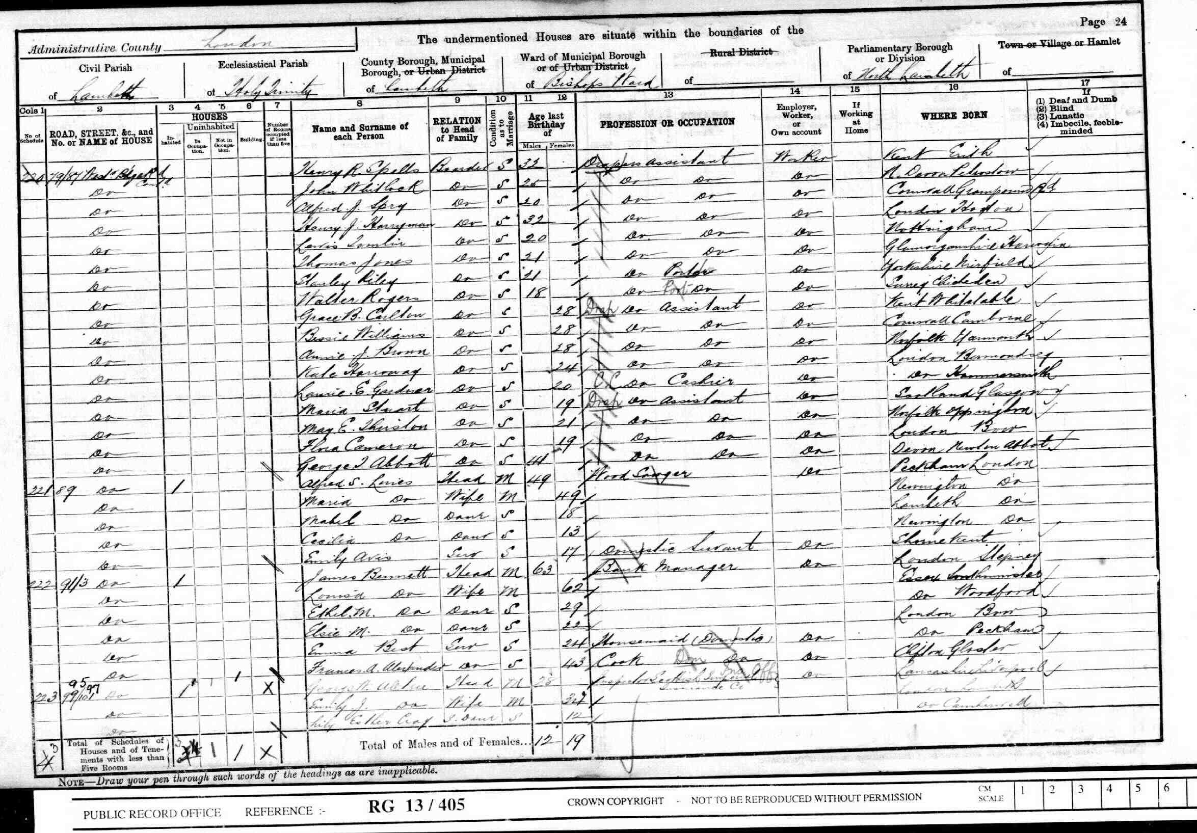 • Lived at: 41 Herne Hills Road, 1891, Brixton, Surrey, England. 4 • Occupation: Salesman, 1891, Brixton, Surrey, England. 4 • Convicted: stealing 7 rugs, 1896, Marylebone, London.