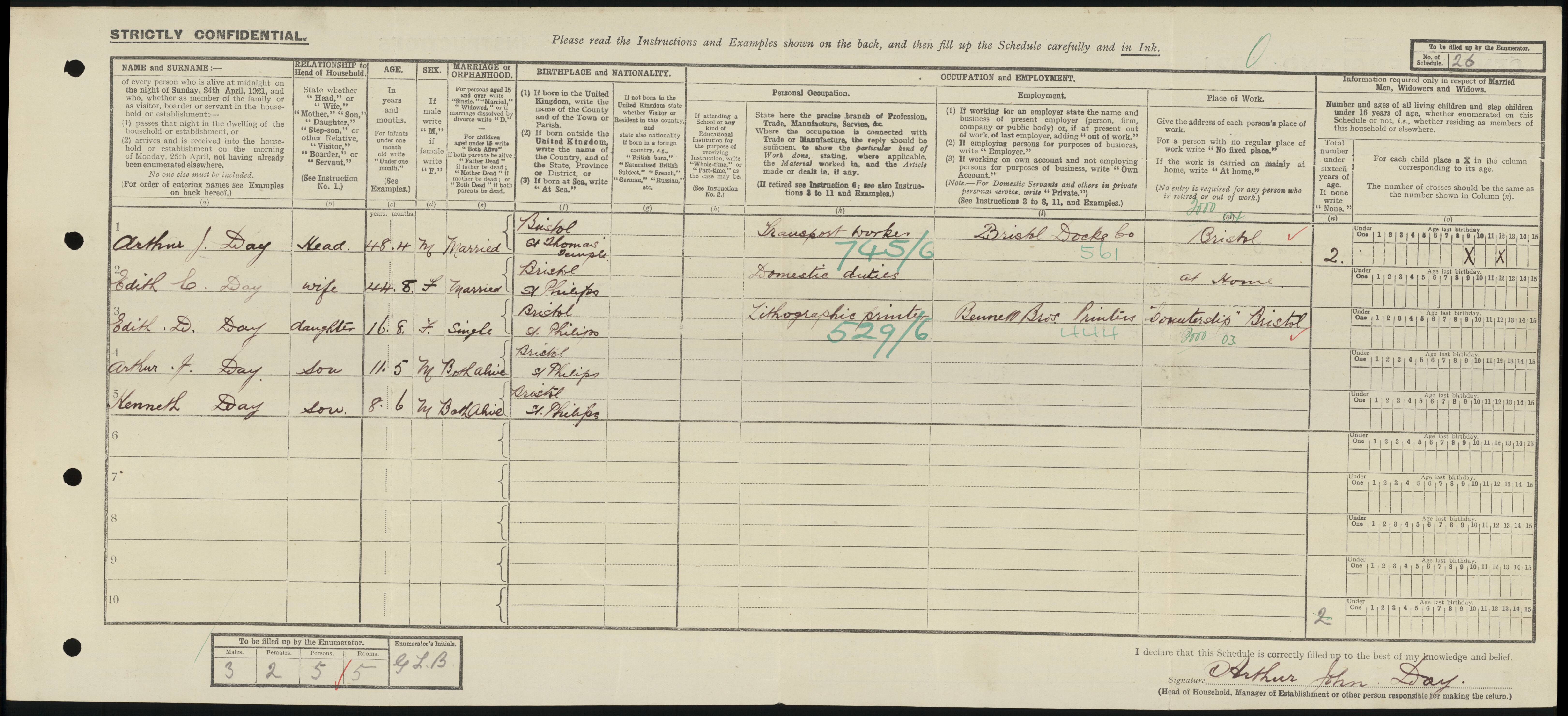 • Occupation: Lithographic Printer, 1921, Bristol, Gloucestershire, England.