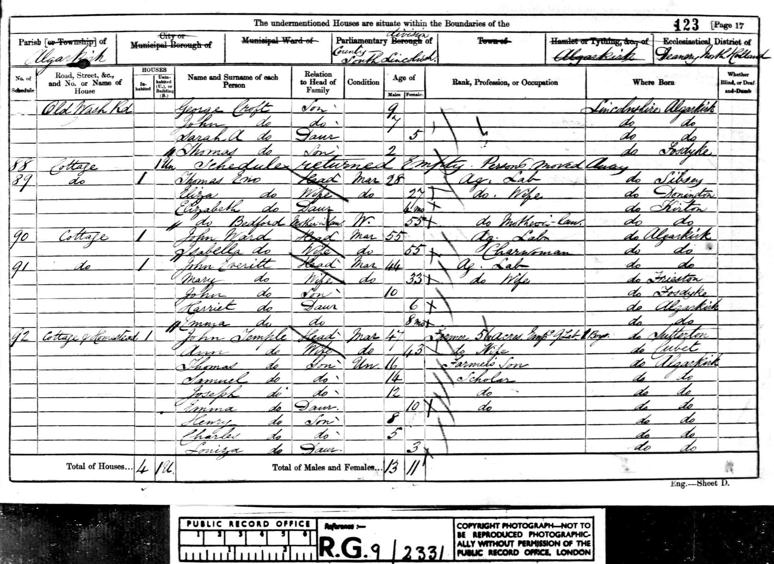 Events • Lived at: Old Wash Road, 1861, Algarkirk, Lincolnshire, England. 2