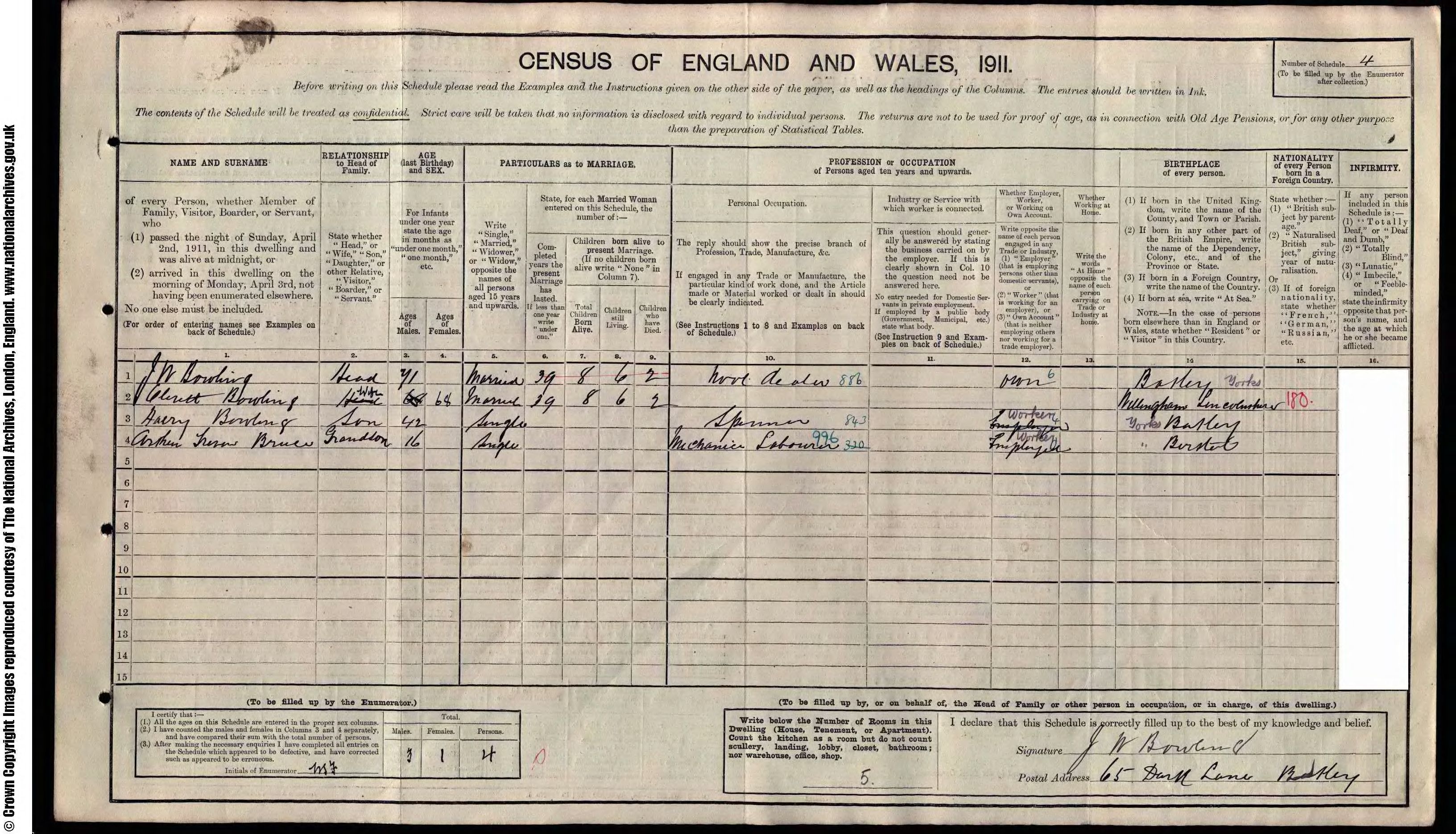 • Visited: Grandparents at 65 Dark Lane, 1911, Batley, Yorkshire, England.