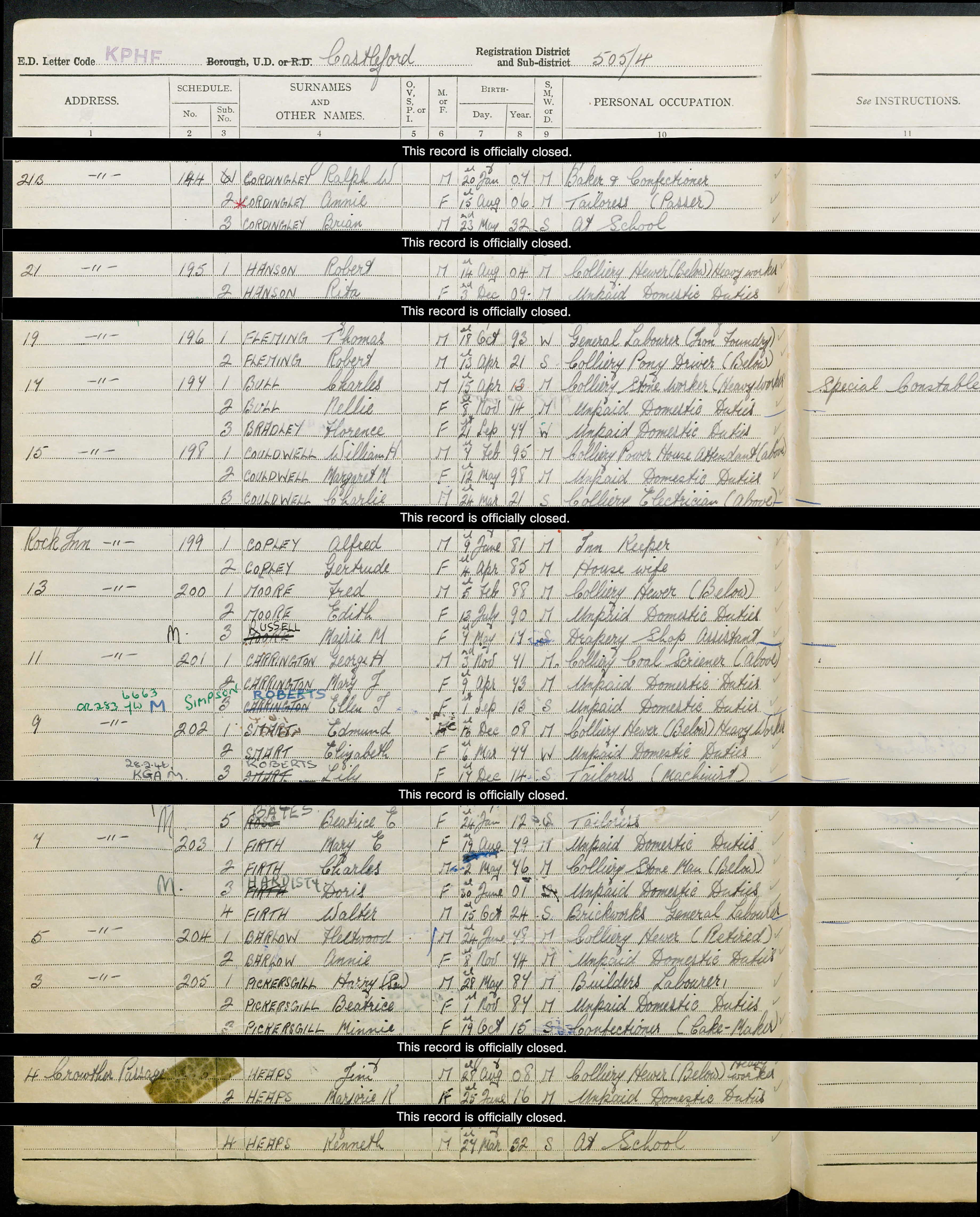 • Occupation: Baker, 1939, Castleford, Yorkshire.