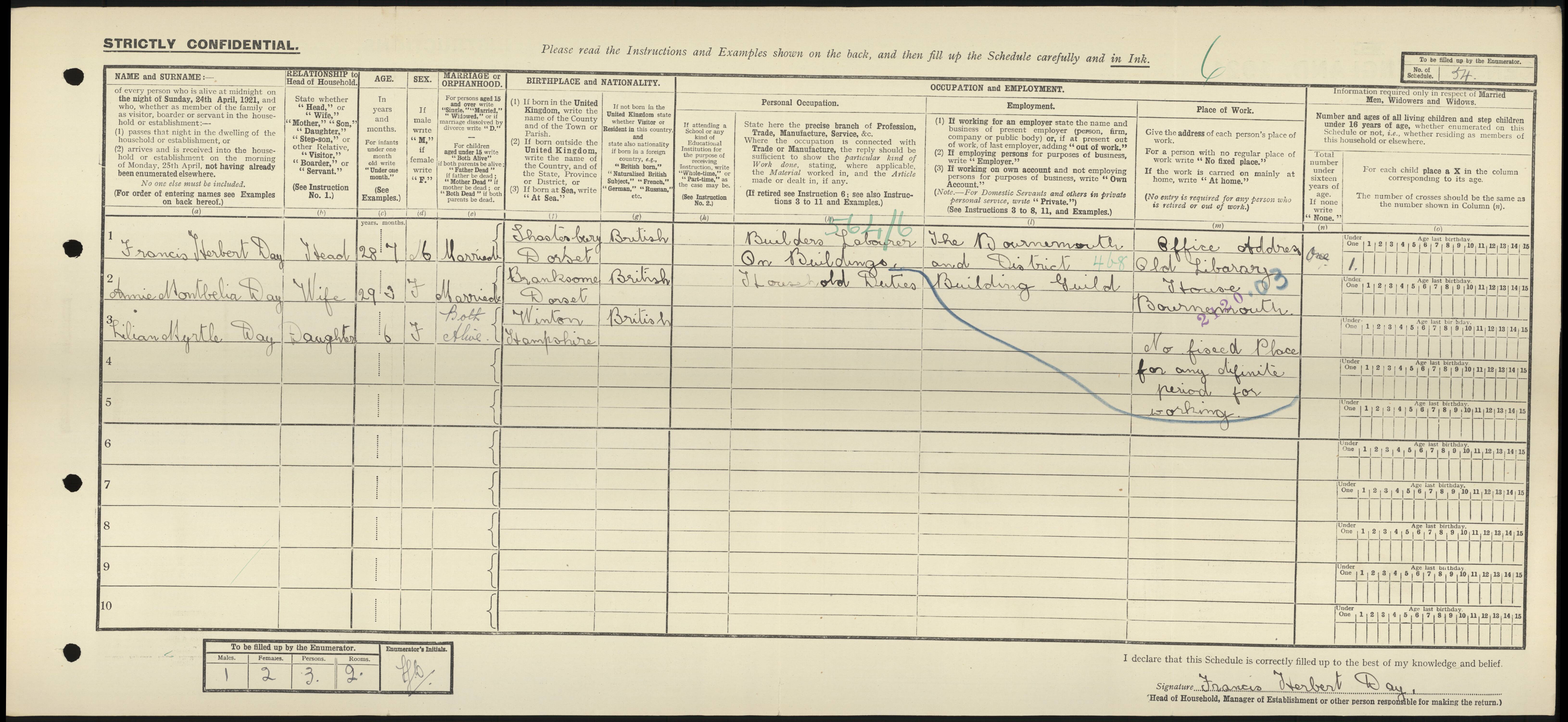 • Occupation: Builder's Labourer, 1921, Bournemouth, Dorset, England.