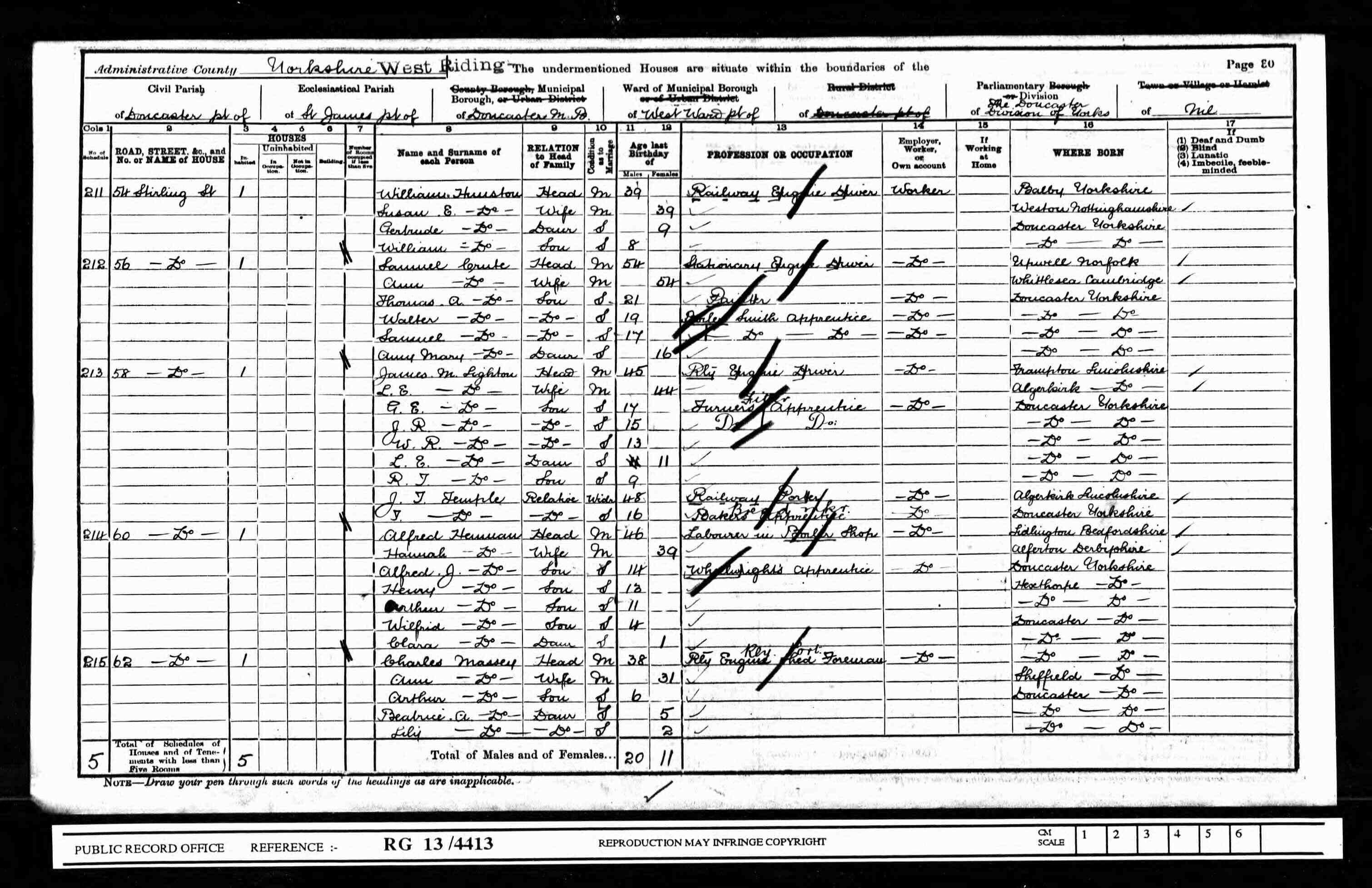 • Lived at: 58 Stirling Street, 1921, Doncaster, Yorkshire (West Riding), England.