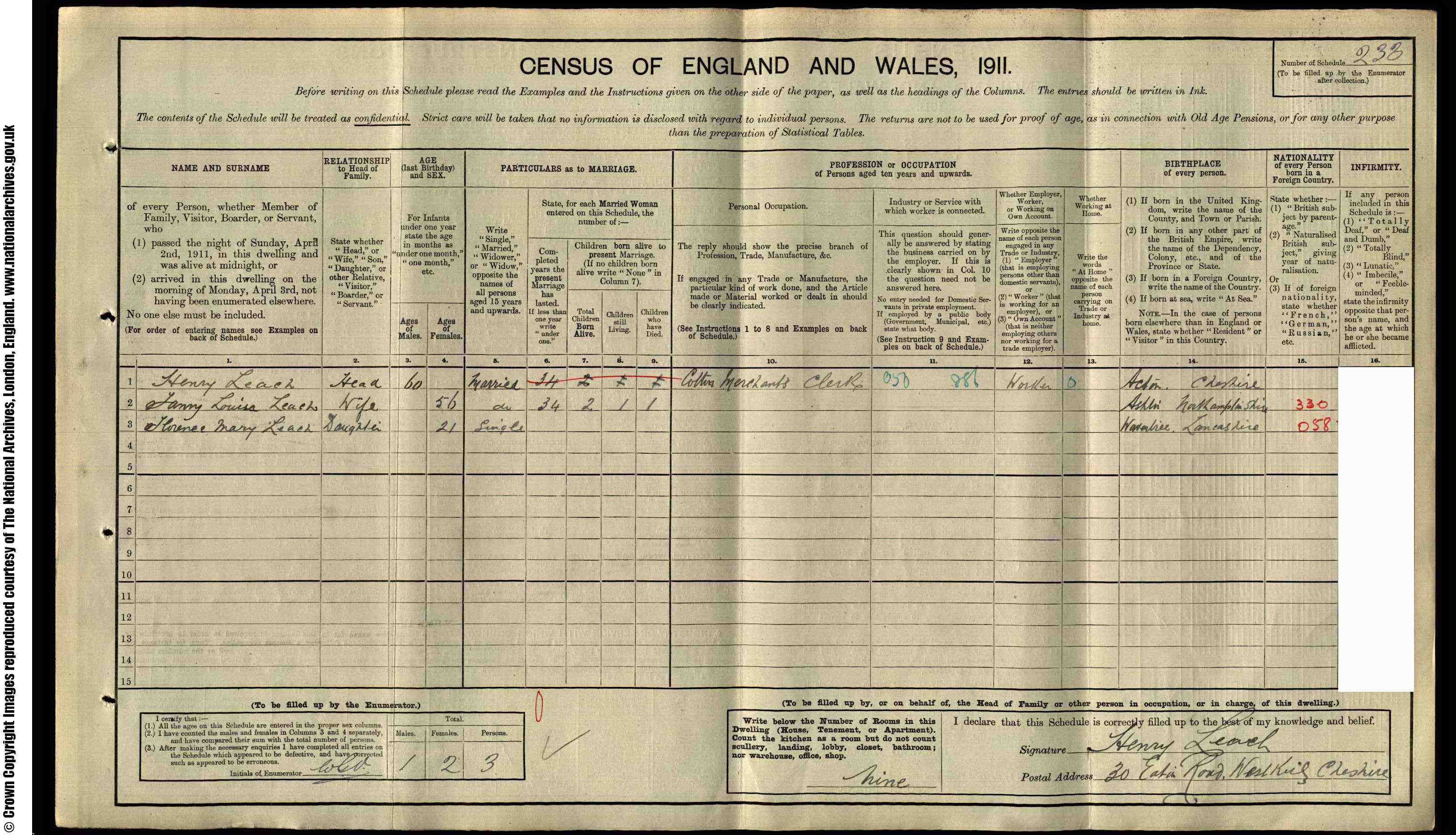 • Lived at: 30 Eaton Road, 1911, Wirral.