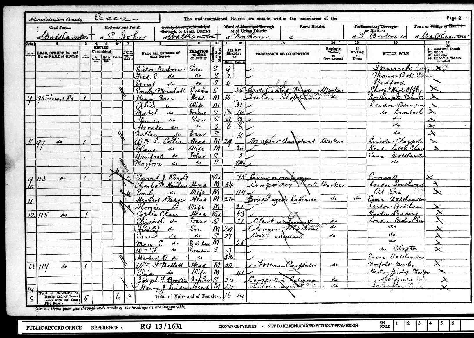 • Lived at: 95 Forest Road, 1901, Walthamstow, Essex, England.
